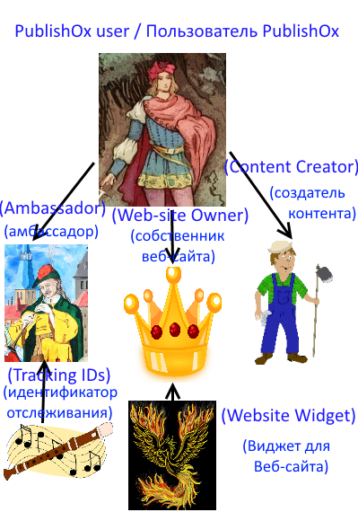The user (Tsarevich Ivan) of PublishOx can be a Content Creator, Web-site Owner or an Ambassador.