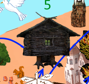 It’s represented on the image as an izba because that’s the place where the Baba-Yaga (witch in Russian folk-tales) lives (who flies with the help of a broom; top left).