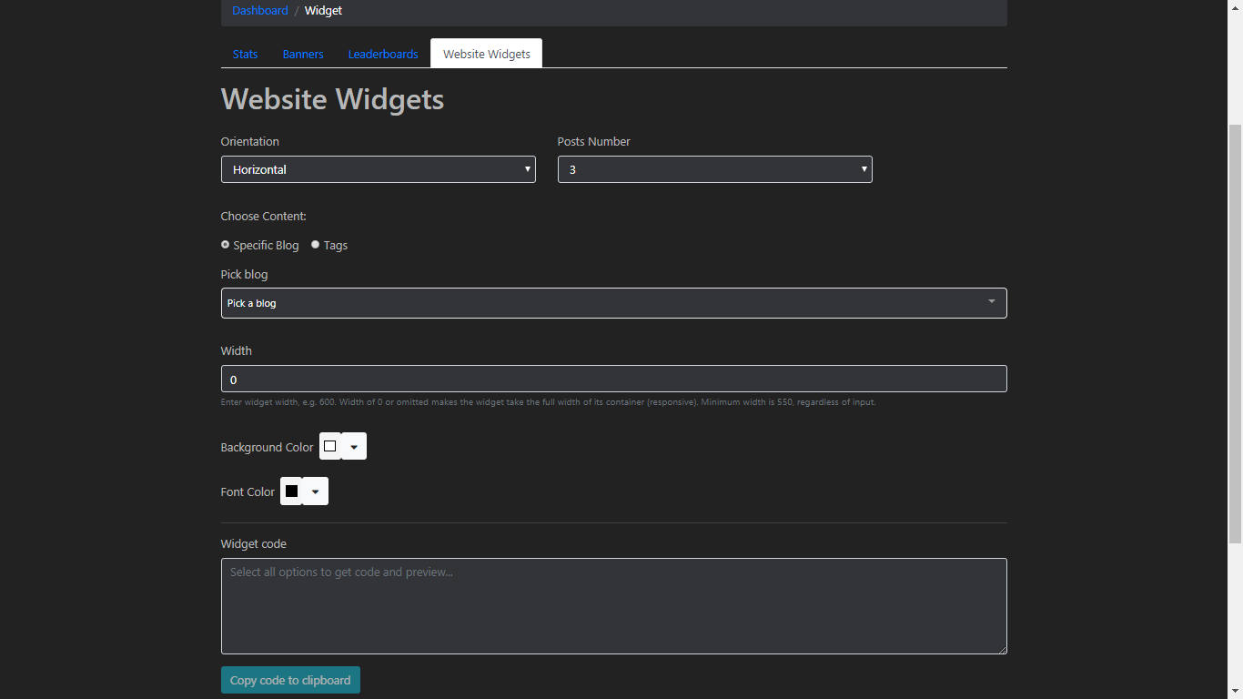 To join an Ambassador program and get the Website widget you‘ll need to go to Dashboard.