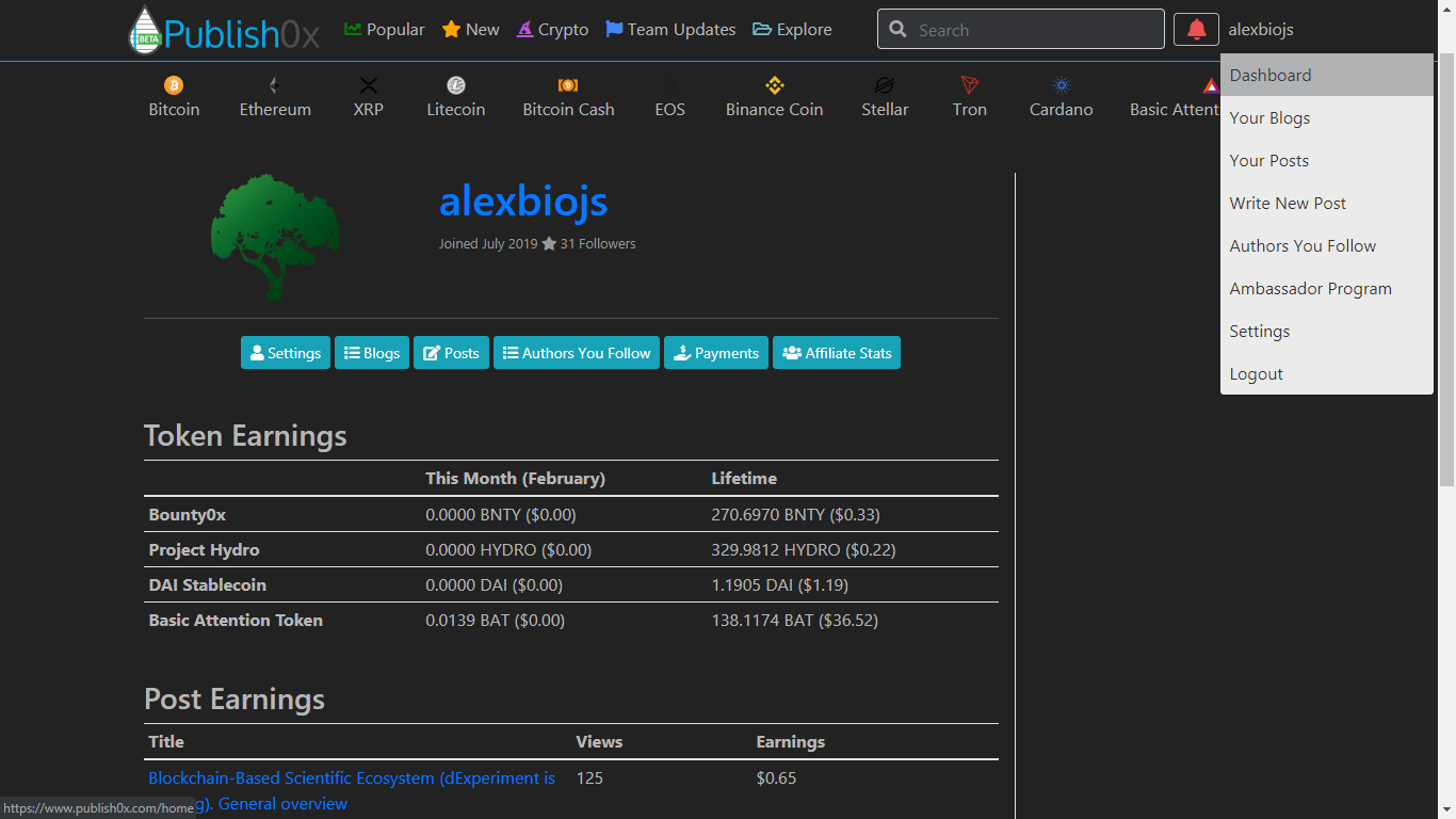 The most important features is probably the fact that it is a crypto-agnostic platform (which means it doesn’t have its own token, but rather use the tokens provided by other crypto-projects), which makes it immortal to some extent, and that it allows to earn writers as well as readers.