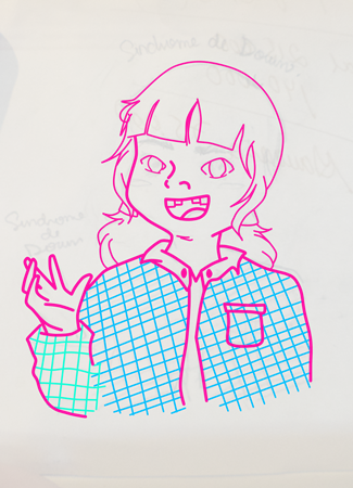 I searched the google images to be able to draw a person with this condition, and I got this beautiful one. So I proceeded to draw the baby my style. She really exists, I don't know about her data, but here I will leave the picture next to the link where I got it.