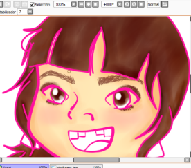 After having the picture of the drawing that I made on the sheet, I will pass the picture to the computer and open the program, start by opening the sketch in the program and mainly I will make the lines of my drawing, I made them pink, but this will give same as later I will change the color in different areas, it all depends on the color that is within the lines.
