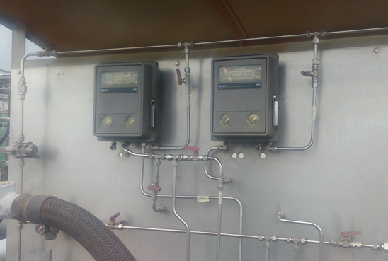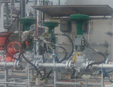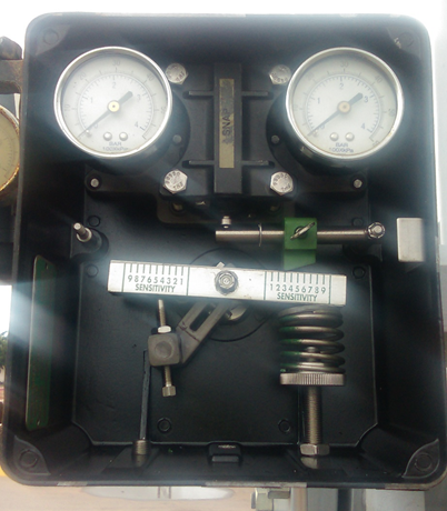 One of the most used applications is in the gas treatment process, assuming the role of an element for the control of the regulation in case of failures of the electrical system. In the image we can appreciate the equipment in the background, the green valves located in pairs are one controlled by electronic equipment and another by this pneumatic controller, the measurement point is taken upstream of the valve and in response to this measurement the controller sends a signal to the control valve which will open or close according to the needs of the process to bring the variable (pressure) to the desired point. This process is known as regulation because when there is a change in the variable you want to keep at a specific point this controller responds by sending a signal to the valve to act on that purpose.