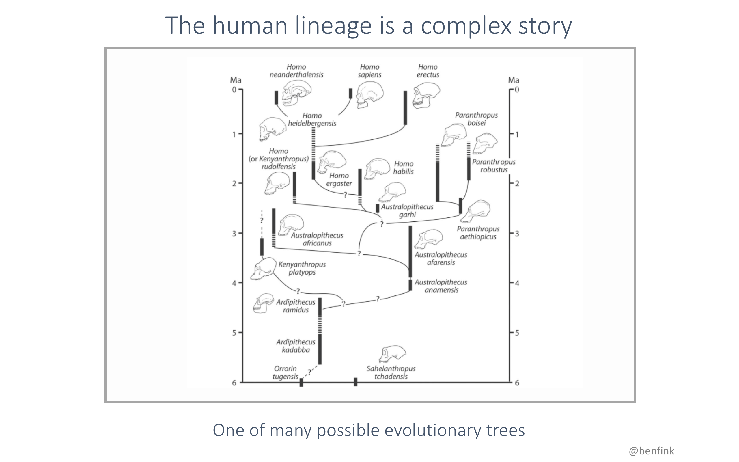 And also how the Bayesian theory is true in everything. We will never know for certain of anything. Nothing can be 100% true in a truly scientific manner. There is always new data that will disrupt the current thinking that bring us nearer to understanding how things work. We now know that human evolution (or evolution for the matter) isn't a linear process. But a web of many many factors contributing to what we are now.