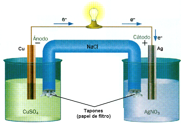 The battery Cu-Ag, an example of a reaction rédox, source of image of mastery of wikimedia commons, Author Muro de Aguas