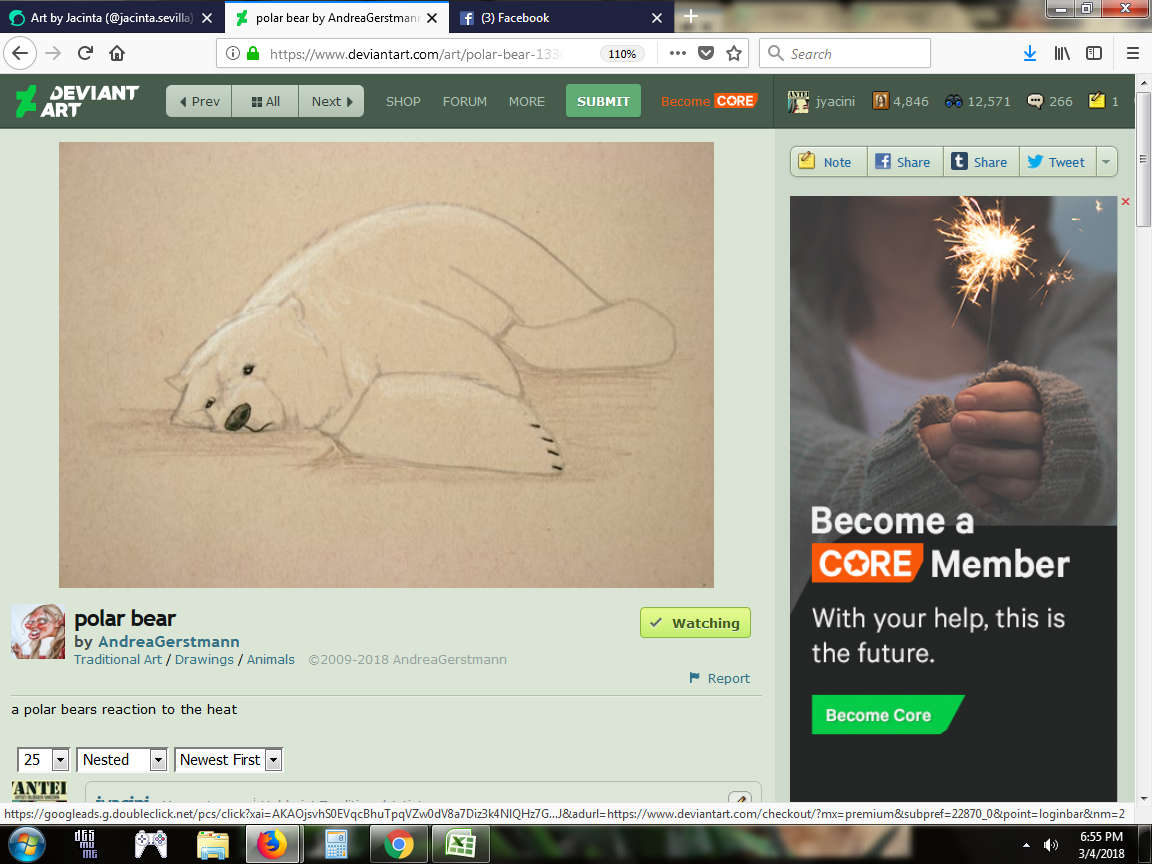 This very adorable artwork is made by artist Andrea Agerstmann from the website www.deviantart.com. I chose this picture because I know it is most expressive. Polar bears and heat do not go well together, nor do the ice caps need any more heating than it already gets today.