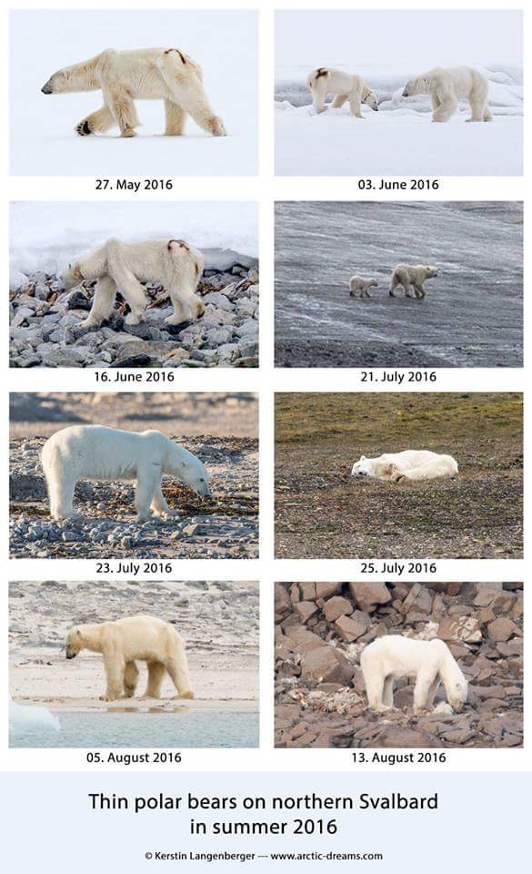 These are pictures of thin polar bears in northern Svalbard, summer of 2016.
