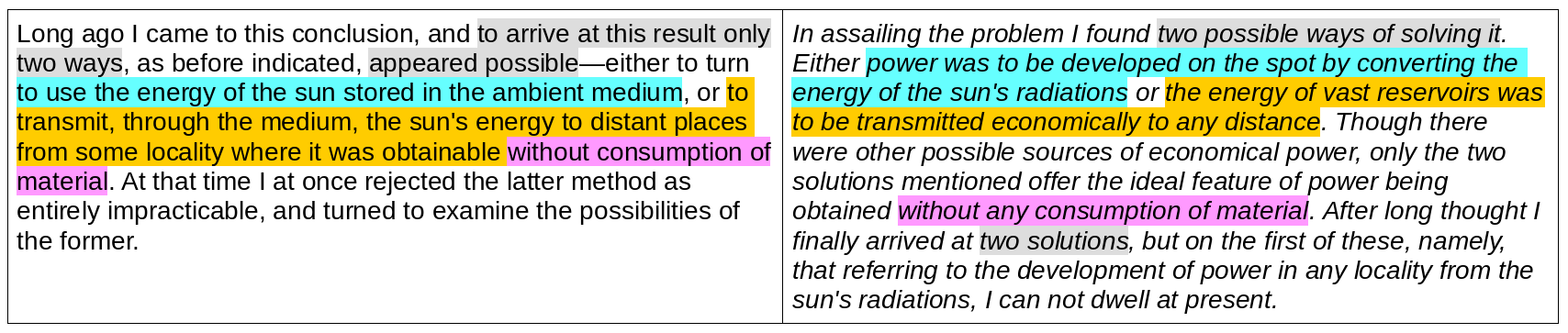 Notice the “I can not dwell at present”. Tesla can not tell us directly what he would like to tell us, but he will tell us in this article (for those who can see through his analogies).