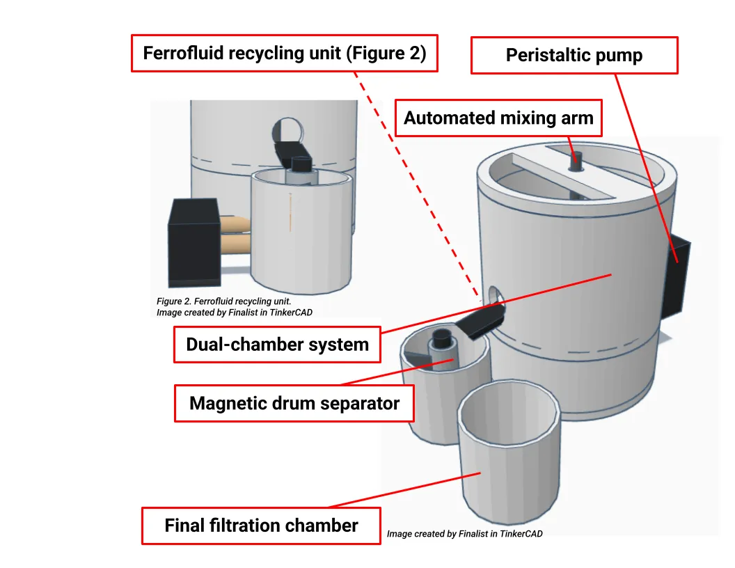La gran innovación de su invento es que prescinde por completo de las membranas de filtro sólidas, lo que podría reducir el costo y la necesidad de mantenimiento. En su lugar, utiliza un método de separación magnética que se basa en tres pasos clave. Primeramente se usa un "imán líquido" que emplea un ferrofluido, que es un aceite magnético capaz de ser manipulado por campos magnéticos. Cuando el agua fluye a través del sistema, el ferrofluido se une selectivamente a las partículas de micro-plástico presentes en el agua.