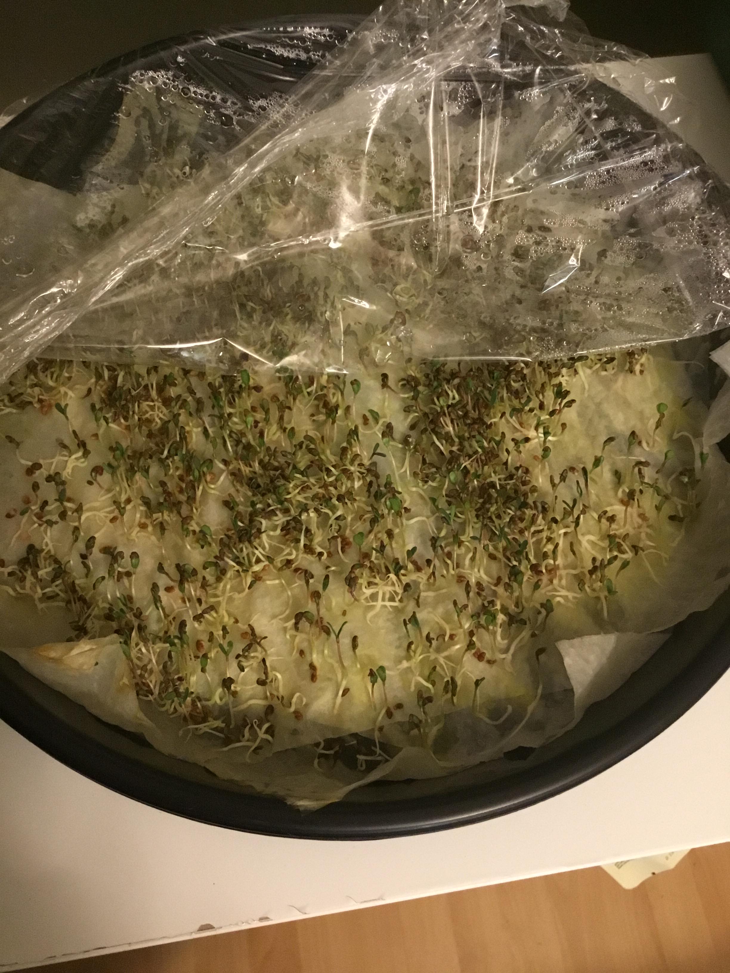 Alfalfa is also a good plant to grow from seed as it germinates in a couple of days and can be eaten as sprouts rather than waiting for a mature plant. The second picture shows some I started on wet paper towel covered with cling wrap. I plan to run a few experiments with different things added to the water to see its effects. There are numerous things you can try if you want to give your children a science project. Salt at different concentrations in the water, the effect of different light conditions. A taste test at the end could be interesting.