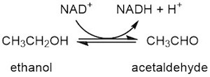 In many animals, these enzymes break down toxic alcohols , while in many bacteria and yeasts, ketones and aldehydes are converted to alcohols. Through this process of fermentation, a constant supply of NAD+, and thus metabolic energy, is ensured. Specifically, pyruvate from glycolysis is converted to acetaldehyde which is then reduced to ethanol by alcohol dehydrogenase. This process allows the continuation of glycolysis by the bacteria, but is also exploited by humans to produce alcoholic beverages from the yeast fermentation of fruits and grains.
