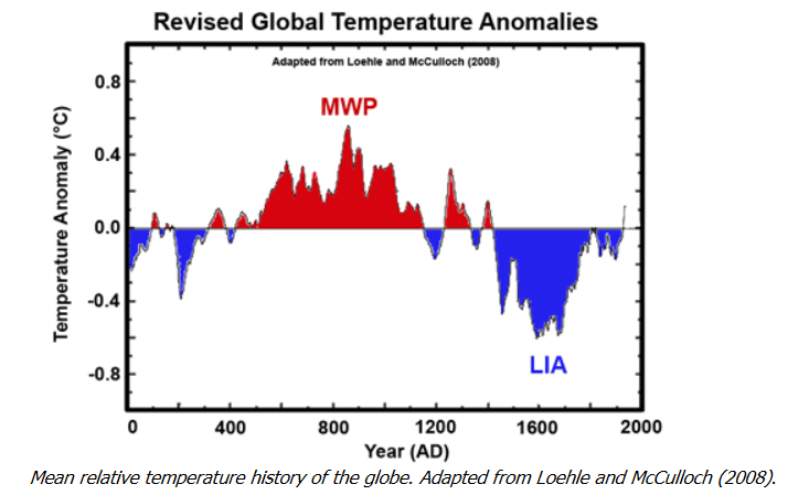 "the mean series shows the Medieval Warm Period (MWP) and Little Ice Age (LIA) quite clearly, with the MWP being approximately 0.3°C warmer than 20th century values."