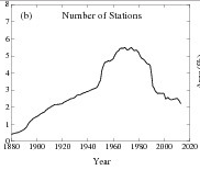 With the advent of high quality satellite temperature data (Figure A1) the number of earth-based temperature stations has declined precipitously since 1980, in part, because so many stations have been render practically useless as a result of UHI effect.