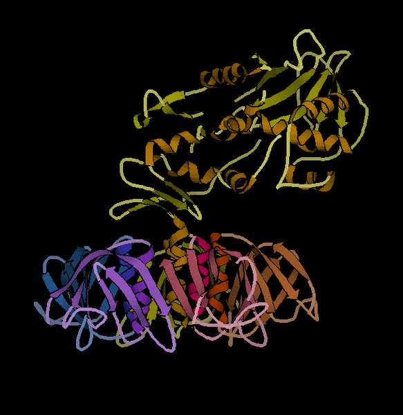 Shigella Dysenteriae is an enterohaemorrhagic disease because it releases an enterotoxin called "Shiga toxin", which can inhibit protein synthesis in endothelials of various target organs, also acting as a neurotoxin. The toxin, composed of two subunits, in fact acts at the ribosomal level: the subunit B binds to the receptor, while the A enters the cell inactivating the factor of ribosomal elongation. The toxin is transferred from a donor to an acceptor and its diffusion can affect the glomerular cells of the kidney and brain cells,the structure of the toxin is shown in the following image.