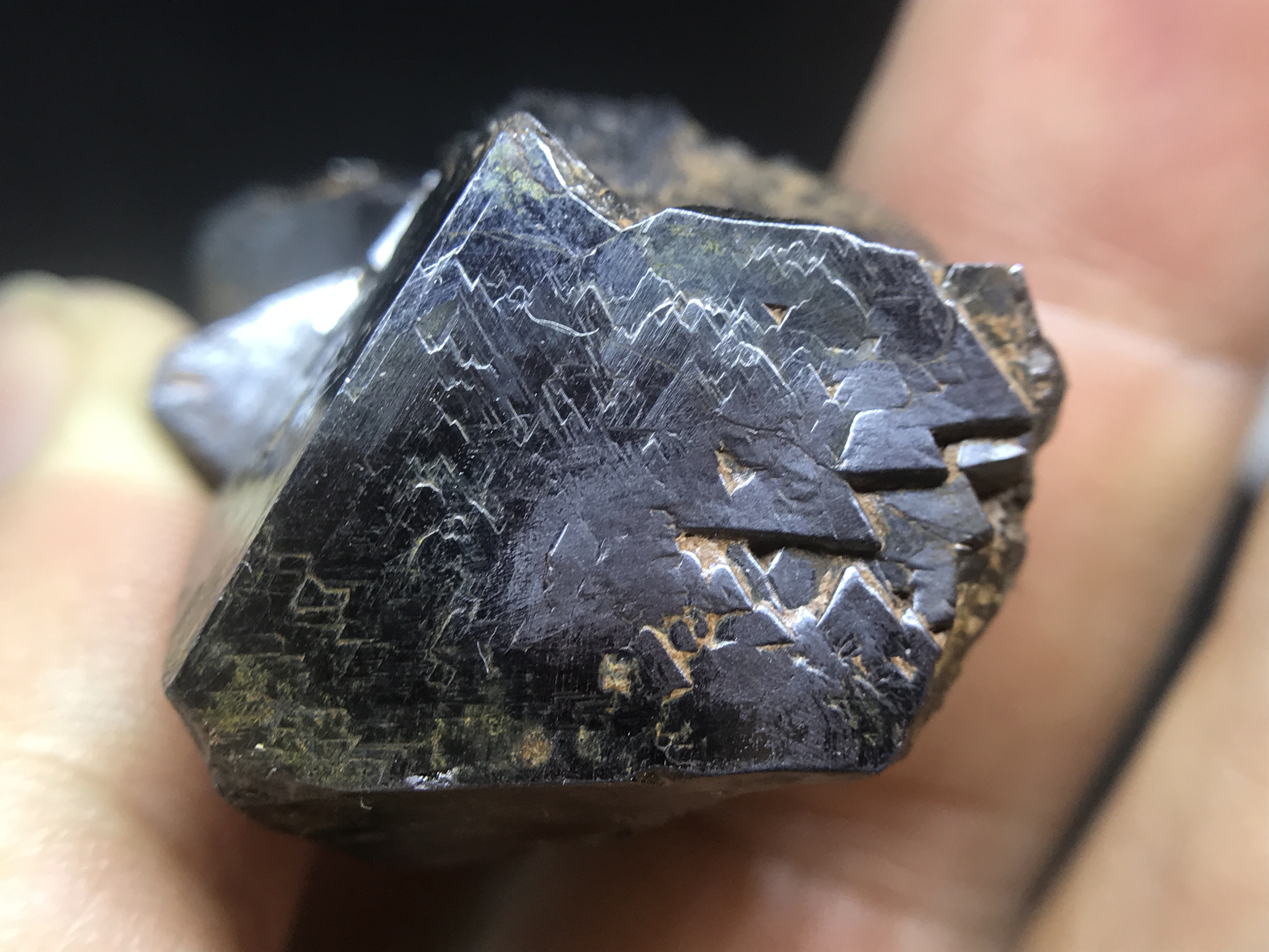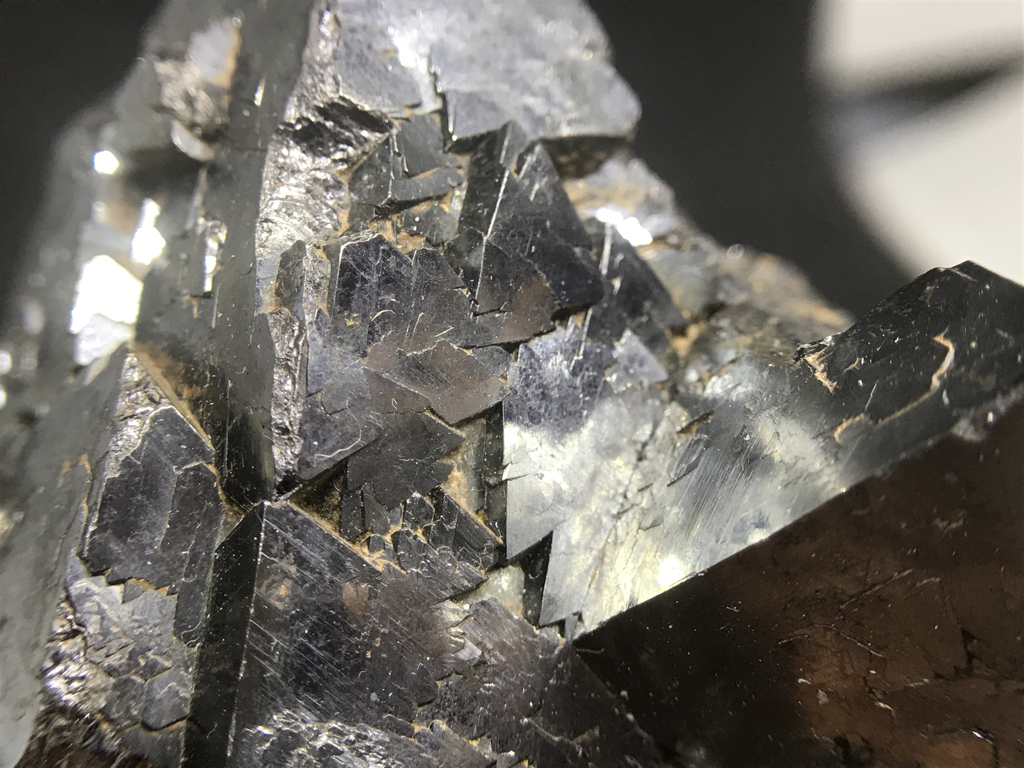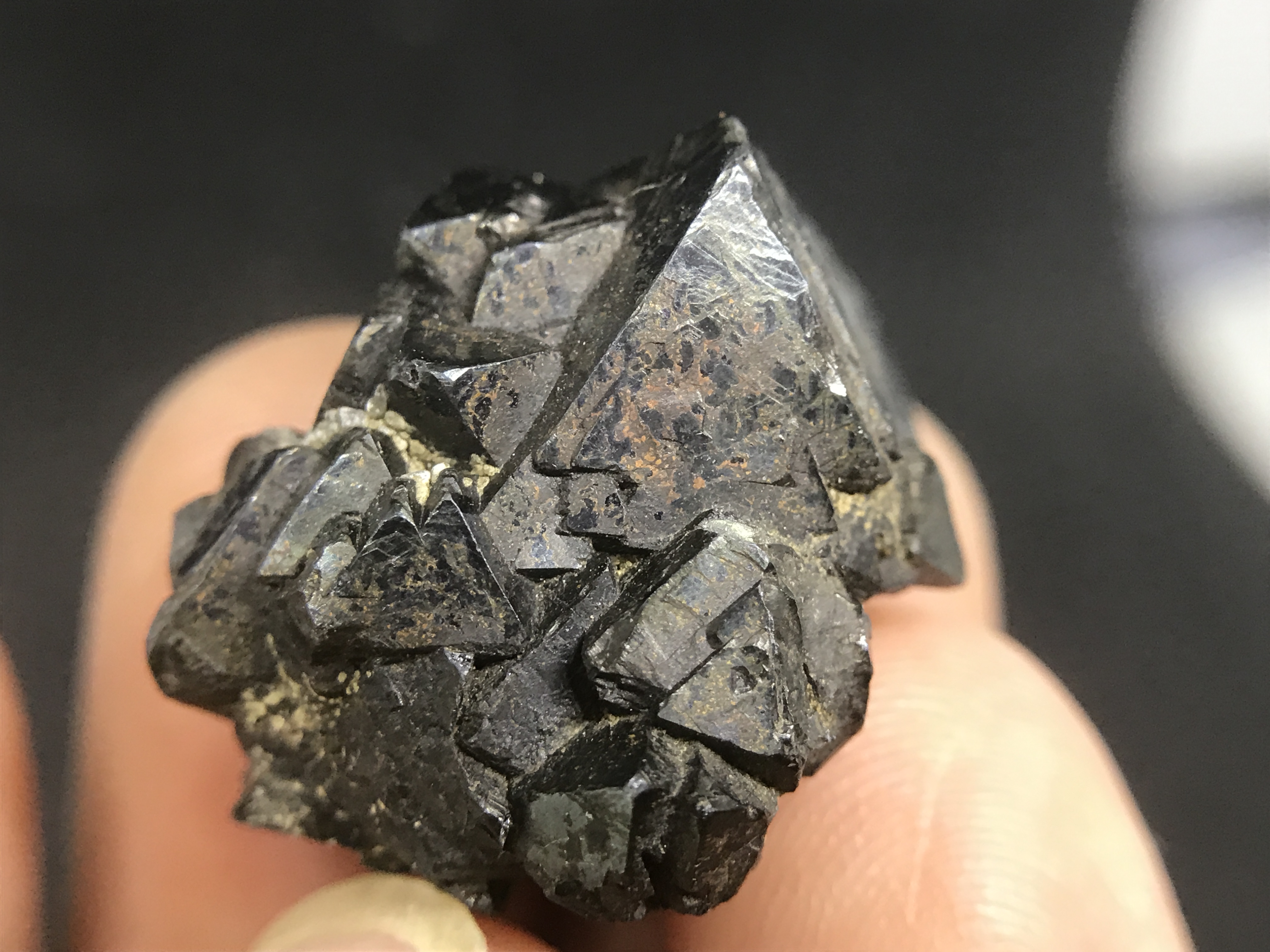 The first set are these small, but impressive. The growths form these perfect triangles one on top of the other. I've beed doing a little research, but I have yet to find how and why this magnetite forms this way.
