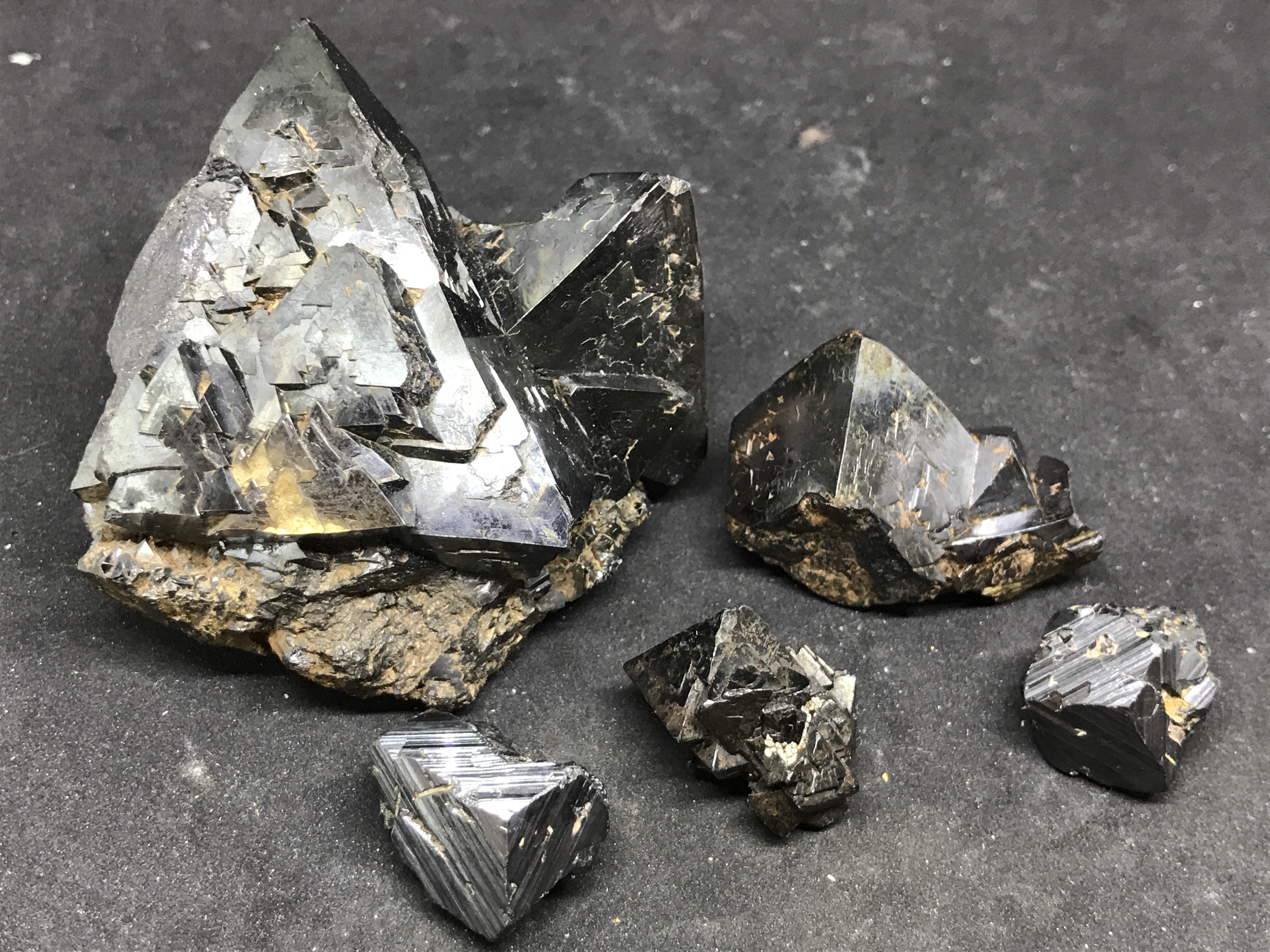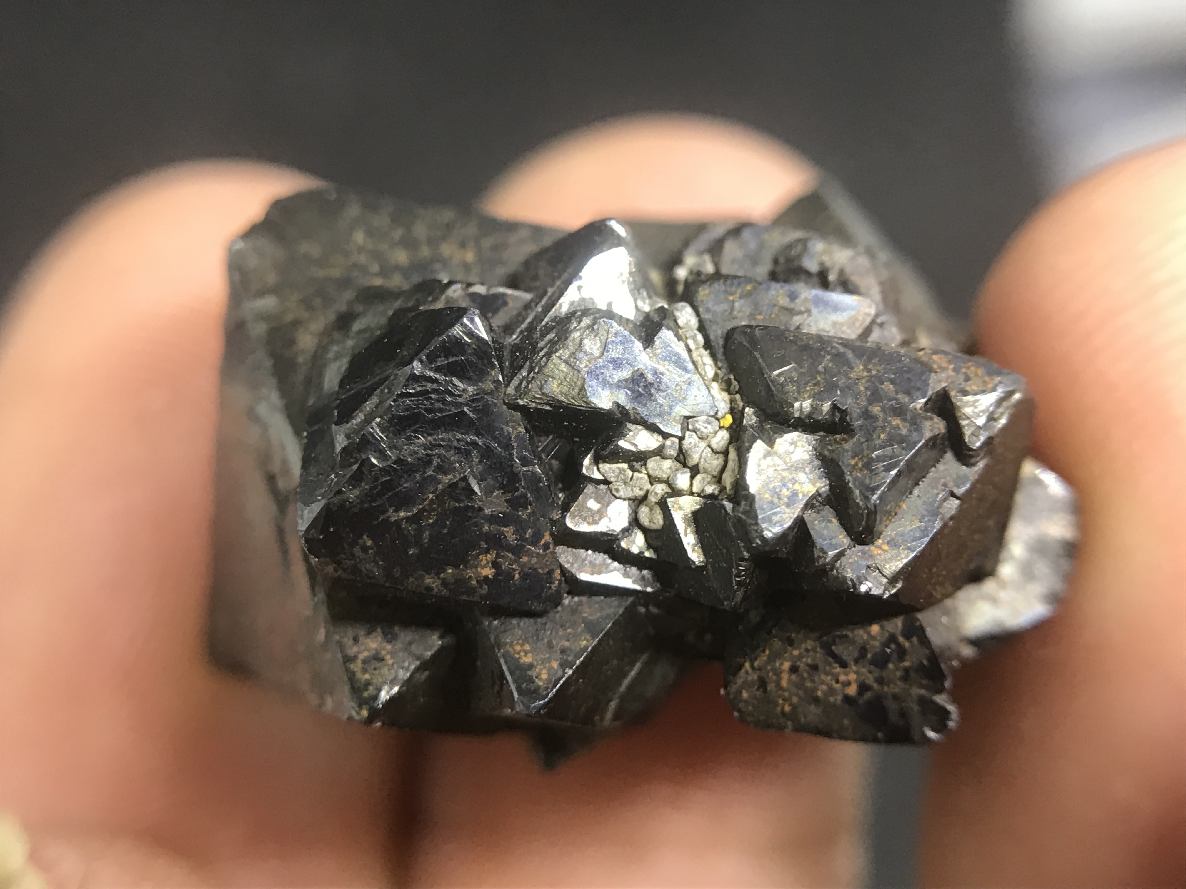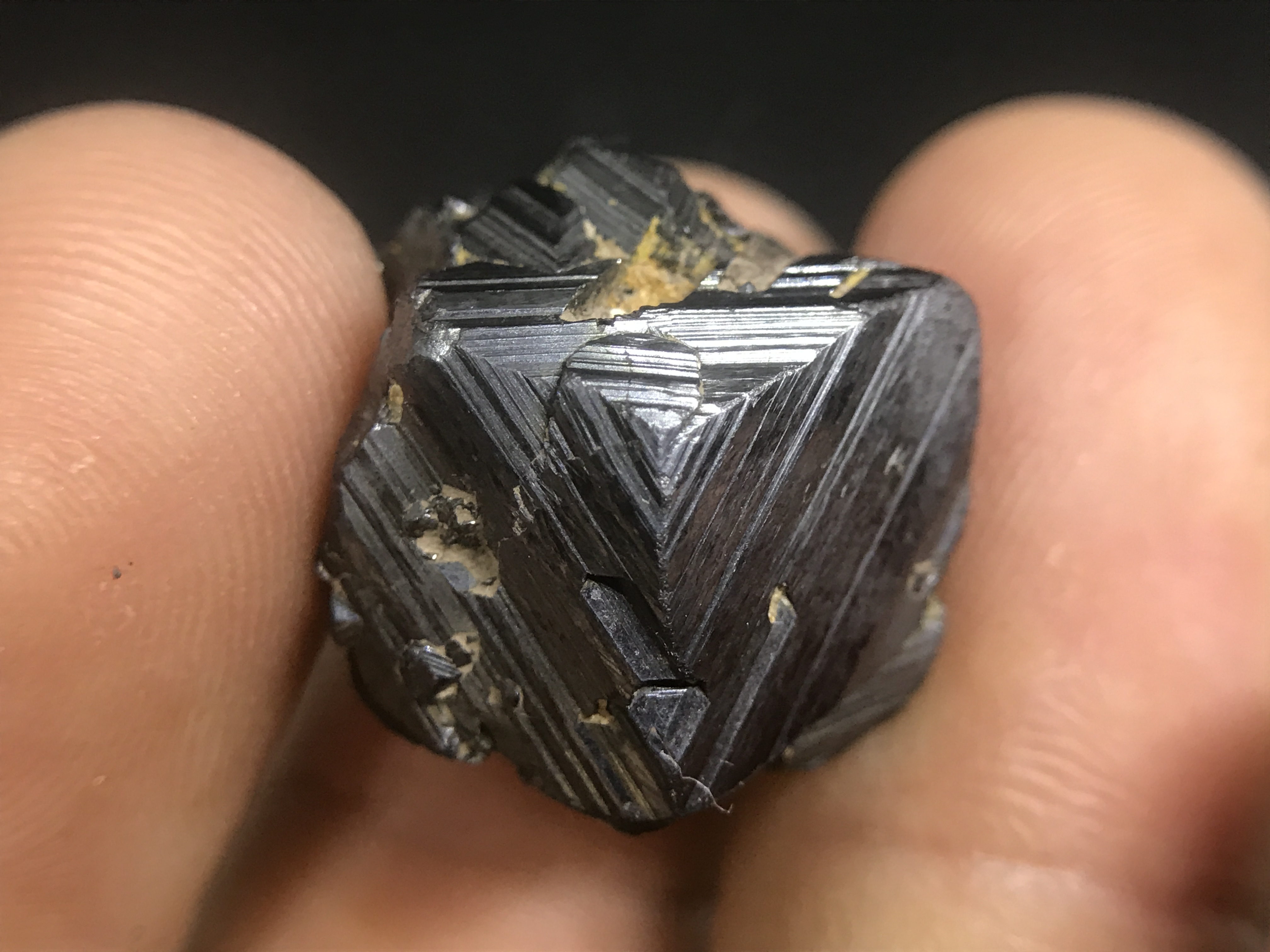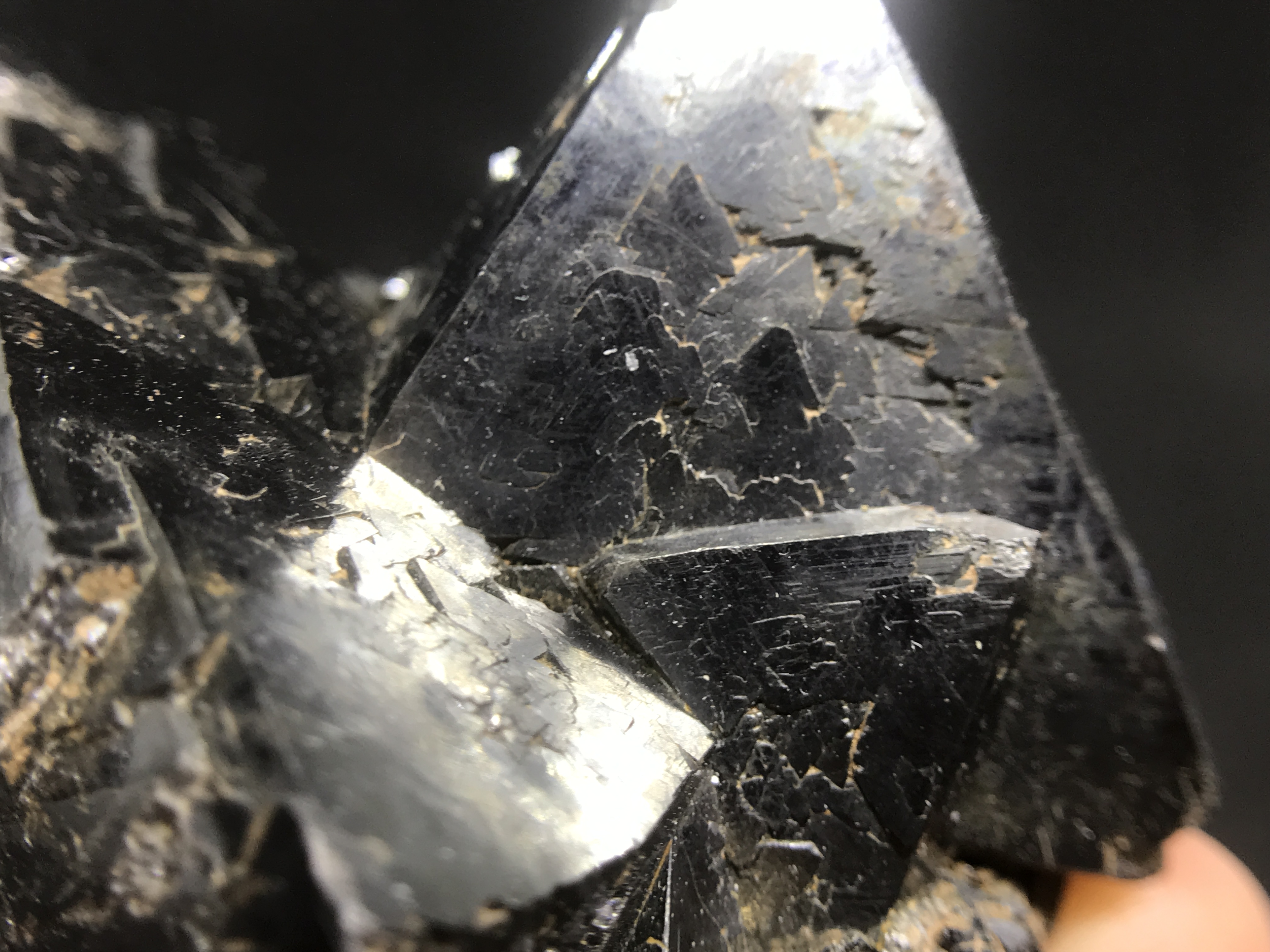 The first set are these small, but impressive. The growths form these perfect triangles one on top of the other. I've beed doing a little research, but I have yet to find how and why this magnetite forms this way.