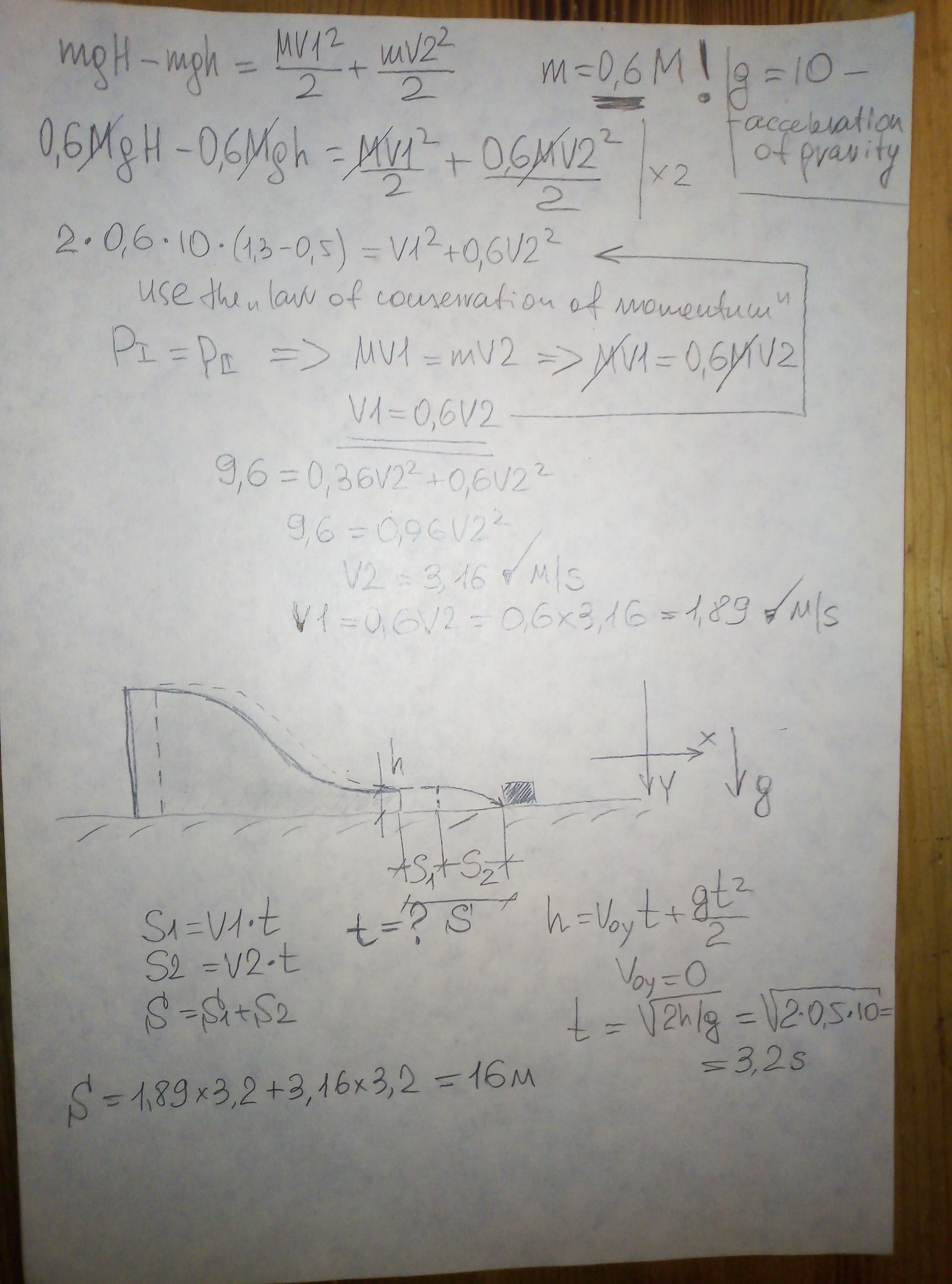 There is an "error". The puck m can't be = 0.6 M, it's too large ))))
