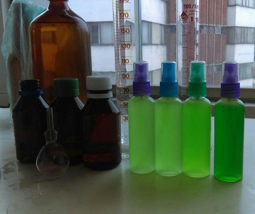 Al final para darle utilidad al aceite extraído hicimos ambientadores, agregando etanol, colorante artificial verde y un poco del aceite esencial.