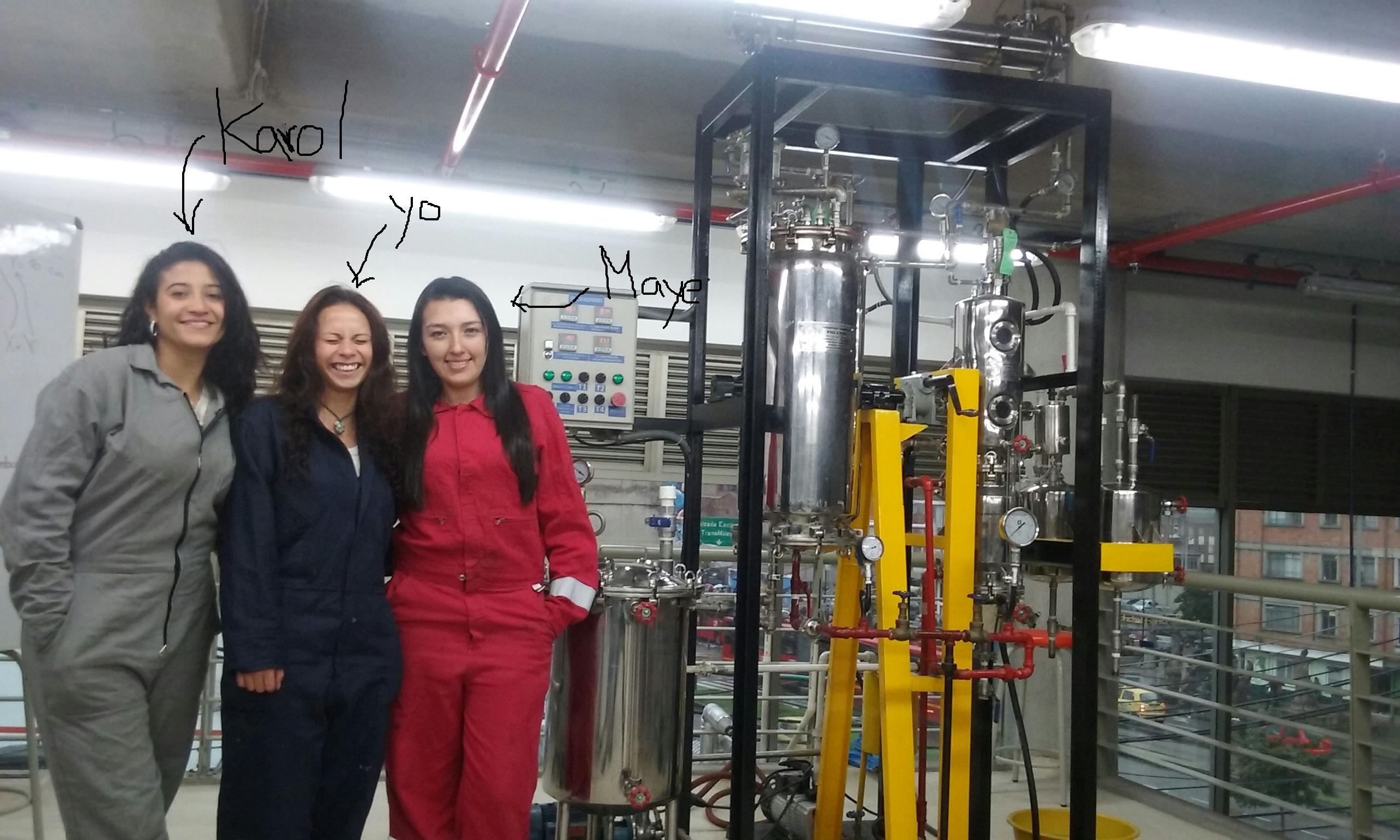 Mis compañeras de proyecto y yo junto al equipo multipropósito ☺