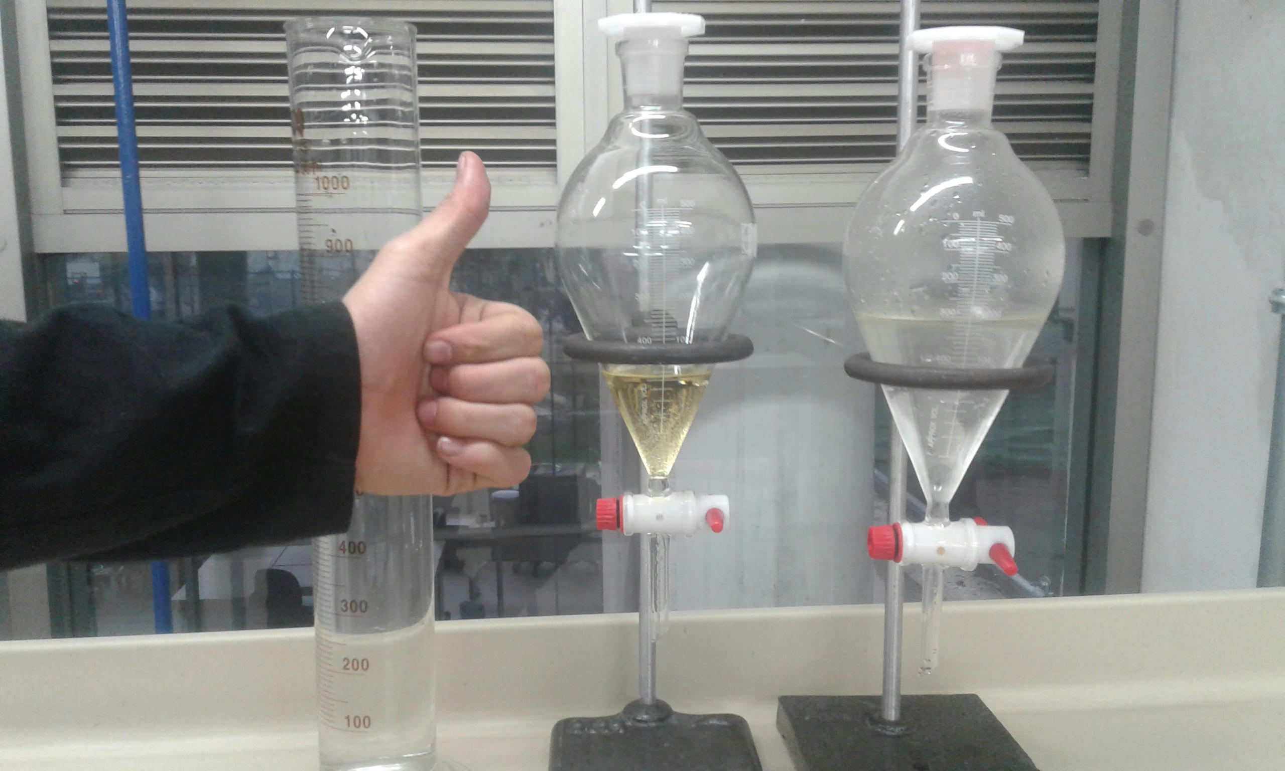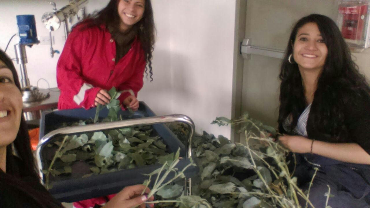 La cosa fue así: primero robamos el árbol para luego deshojarlo y cortar cada hoja a un tamaño de 4 cm2 aproximadamente. El tamaño de partícula es importante ya que una hoja pequeña permite que haya un área superficial de contacto más amplia, por ende un rendimiento mayor. Luego se pesaron las hojas y se depositaron en el tanque. Se abrió la entrada del vapor durante 4 horas y media, sacando el destilado (el aceite mezclado con agua) cada media hora. Dicha mezcla se decantó y se obtuvieron así 55 mL de aceite.