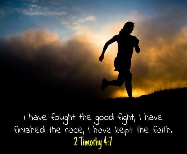1cor9:26..So in my conclusion, a good fight is not yet good unless you finish it well. Ofcourse it will have trials, afflictions along the way-,2cor5:7, Heb11:34, Heb10:32..You run it to the end. That's what's means to keep the faith and run the course. Its a personal journey, but you don't run it alone. We are not the first to run it neither the last. Jesus is our Focus!