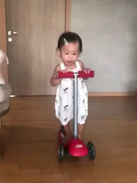 Still a little too young to ride this on her own but she is figuring it out by herself! I like the design of this scooter bettar than other scooters in the marker because the Radio Flyer scooter has a retro feel to it. Easy for kids to steer right or left and the wheels light up when it moves!