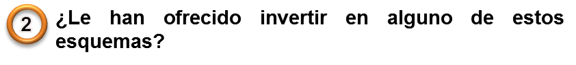 - f) Sospecha de cualquier método desconocido para el pago. Consulta sobre el método que se aplicará para generar las ganancias a los inversores.