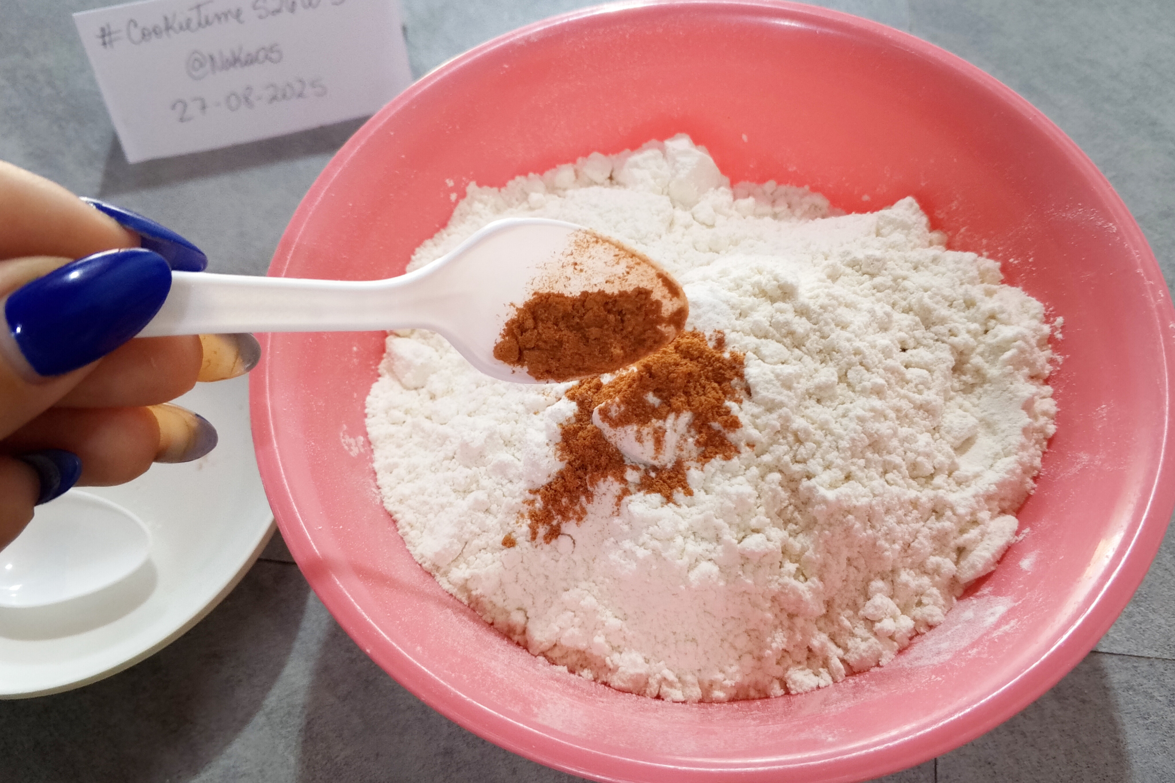 Agregar harina de trigo todo uso, polvo de hornear y la canela molida, mezclar y reservar
