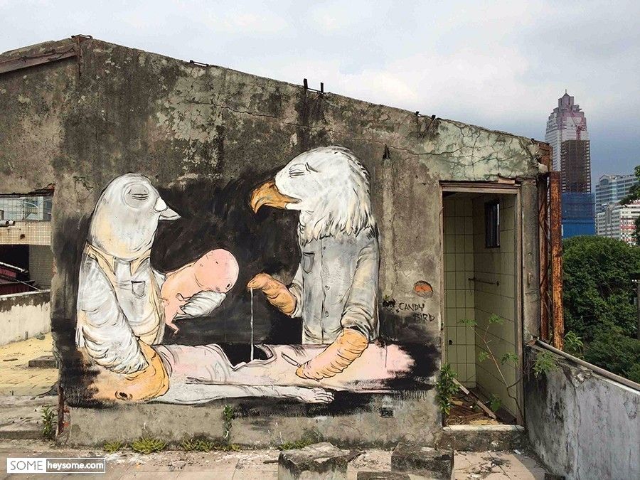 画面,在很多时候是可以阐述比语言更广泛的内容的。信息传递的不确定性和因人而异的解读削减了“标准答案”所带来的局限。涂鸦尤其如此,在沿街的路或者隐蔽的巷子,你当下的心情,你走路的姿态,与你同行的人,甚至是你最后吃进嘴里的那口食物在口腔里残留的味道,都影响着你看待路过的那片涂鸦的神情。它们或许出现的突然,你绕过拐角便瞥见,你毫无防备,你甚至可能觉得它不合时宜,而所有的不合时宜都不是意外。