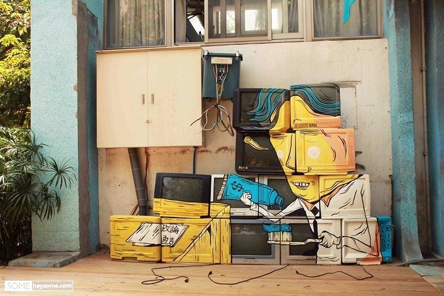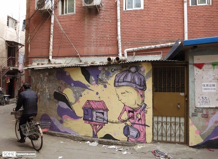 它们同布置在美术馆或博物馆的作品是不同的,街头艺术通常能提供更广泛的交互,当作品冲破展馆所营造的特定“艺术氛围”进入人们的视野时,也意味着更平等和更亲密的关系正在发酵。它不像美术馆的展品那样有威慑力,你大概只敢用欣赏的眼光去试探。面对街头的涂鸦,你会不由自主的审视它,带着好奇或疑问甚至怀疑和揣测,揣测它的意图与动机,揣测它的目的,而这便是思考的过程。
