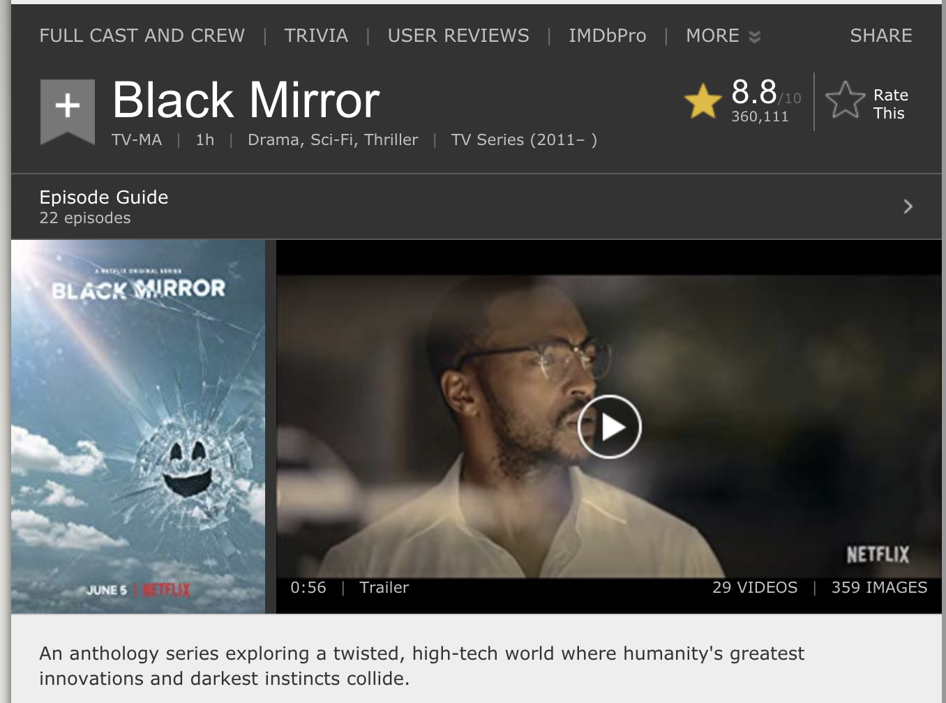 Not to mention the TV series 'Black Mirror" which is known for exploring a twisted, high-tech world where humanity's greatest innovations and darkest instincts collide.