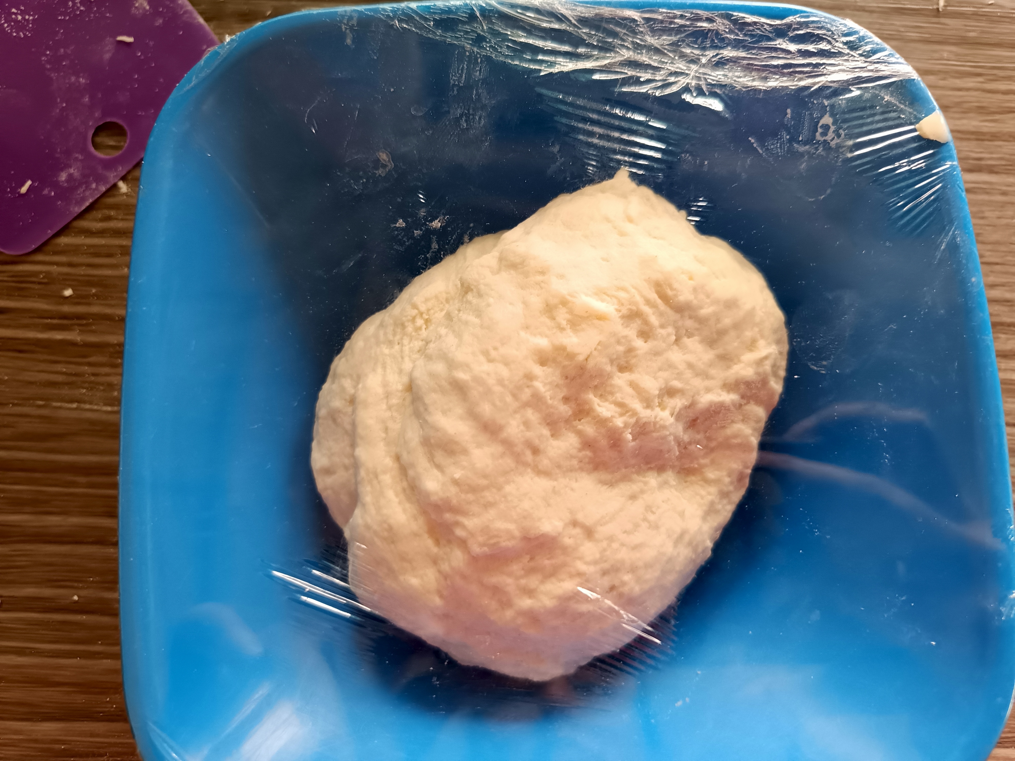 Paso 2_. Ahora vamos a Amasar muy bien, hasta que quede suave. Tapamos la masa con papel film transparente, y se deja reposar reposar por 30 minutos. El reposo es importante porque es lo que le dará suavidad al pan.