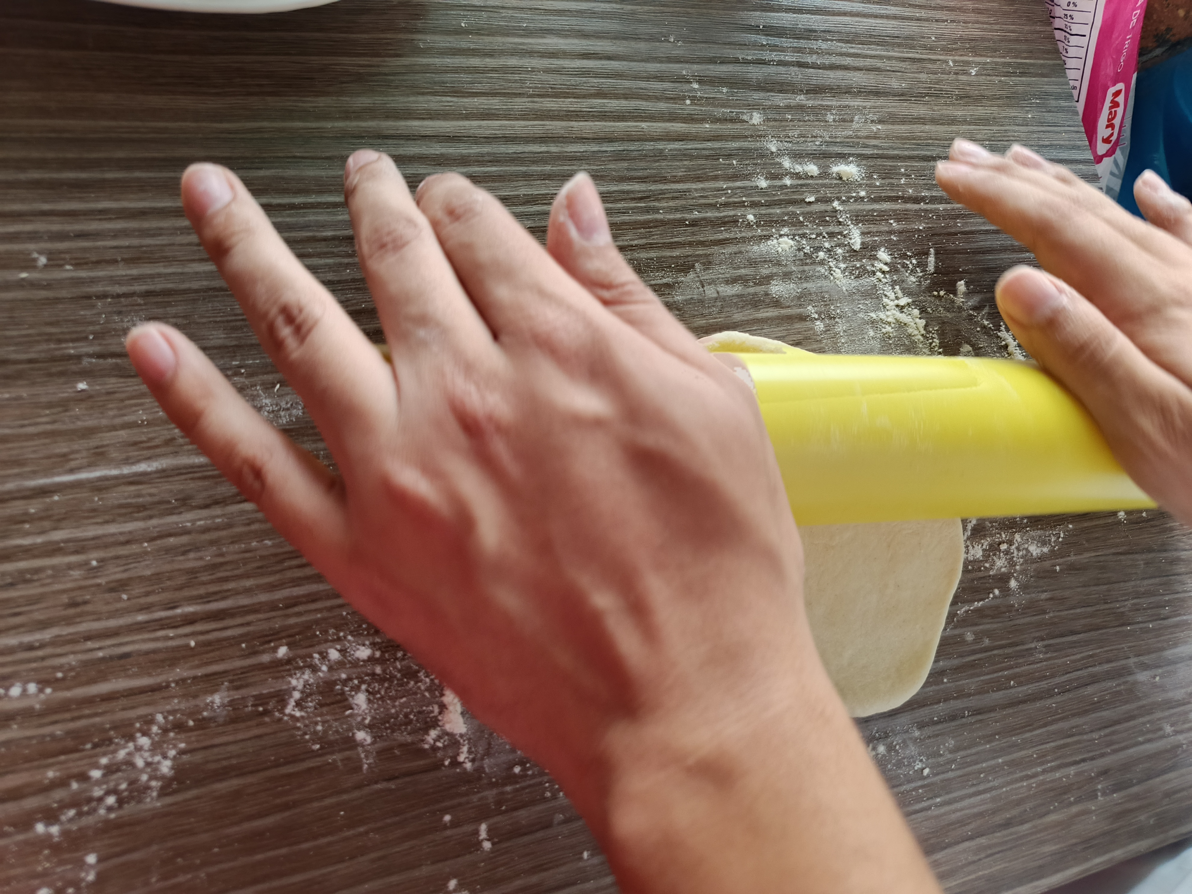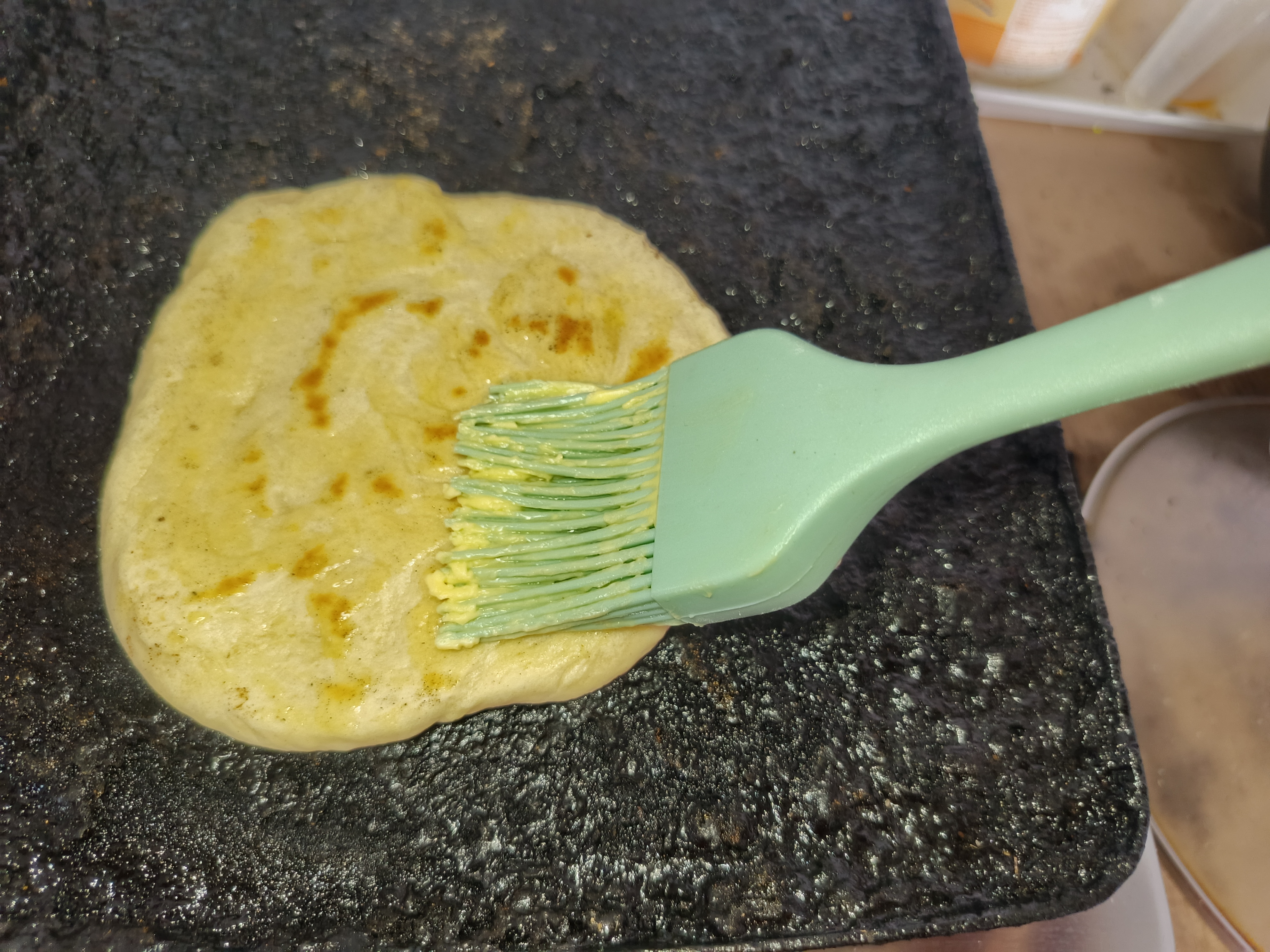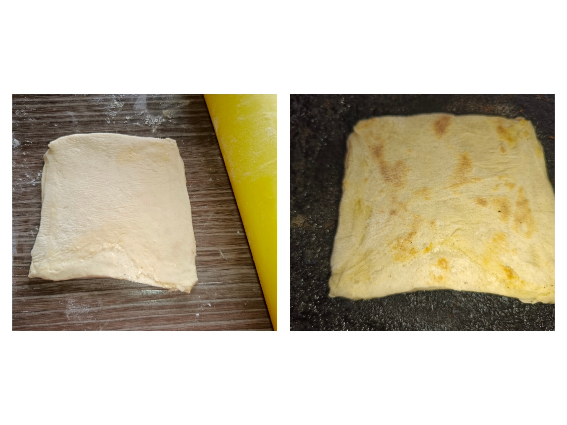 Como la profesora indicó que para hacer panes de estilo Paratha cuadrados y circular se usaba la misma masa quise intentar probar para ver cómo quedaba.