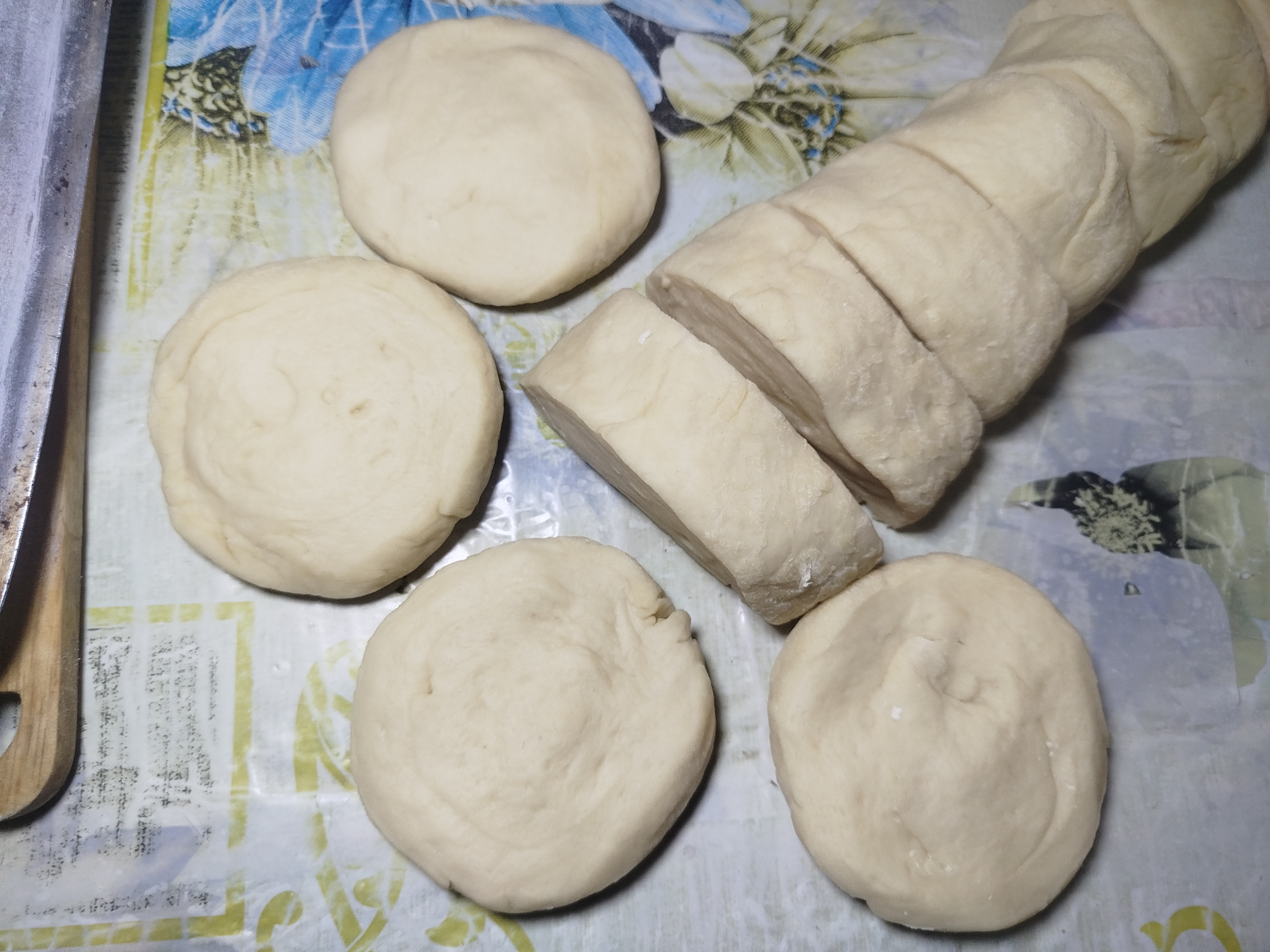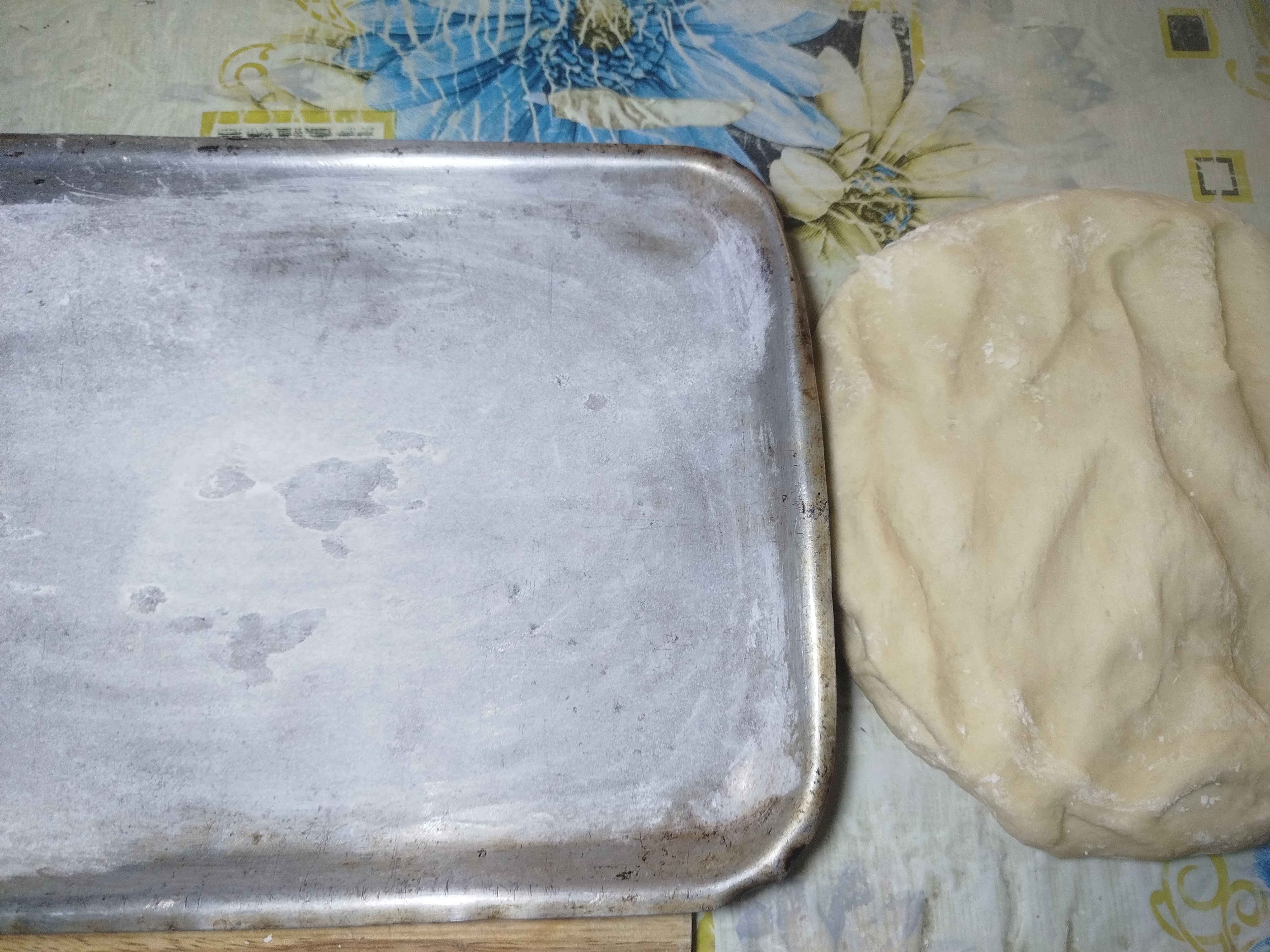 Al pasar el tiempo de reposo observamos que la masa doblo su tamaño y lo que sigue es volver a amasar con movimientos suaves para eliminar el aire, después le puse un poco de aceite a la bandeja y harina, como ya tengo lista la bandeja para colocar los panes lo que hago es dividir la masa en porciones iguales y hacer bolitas.