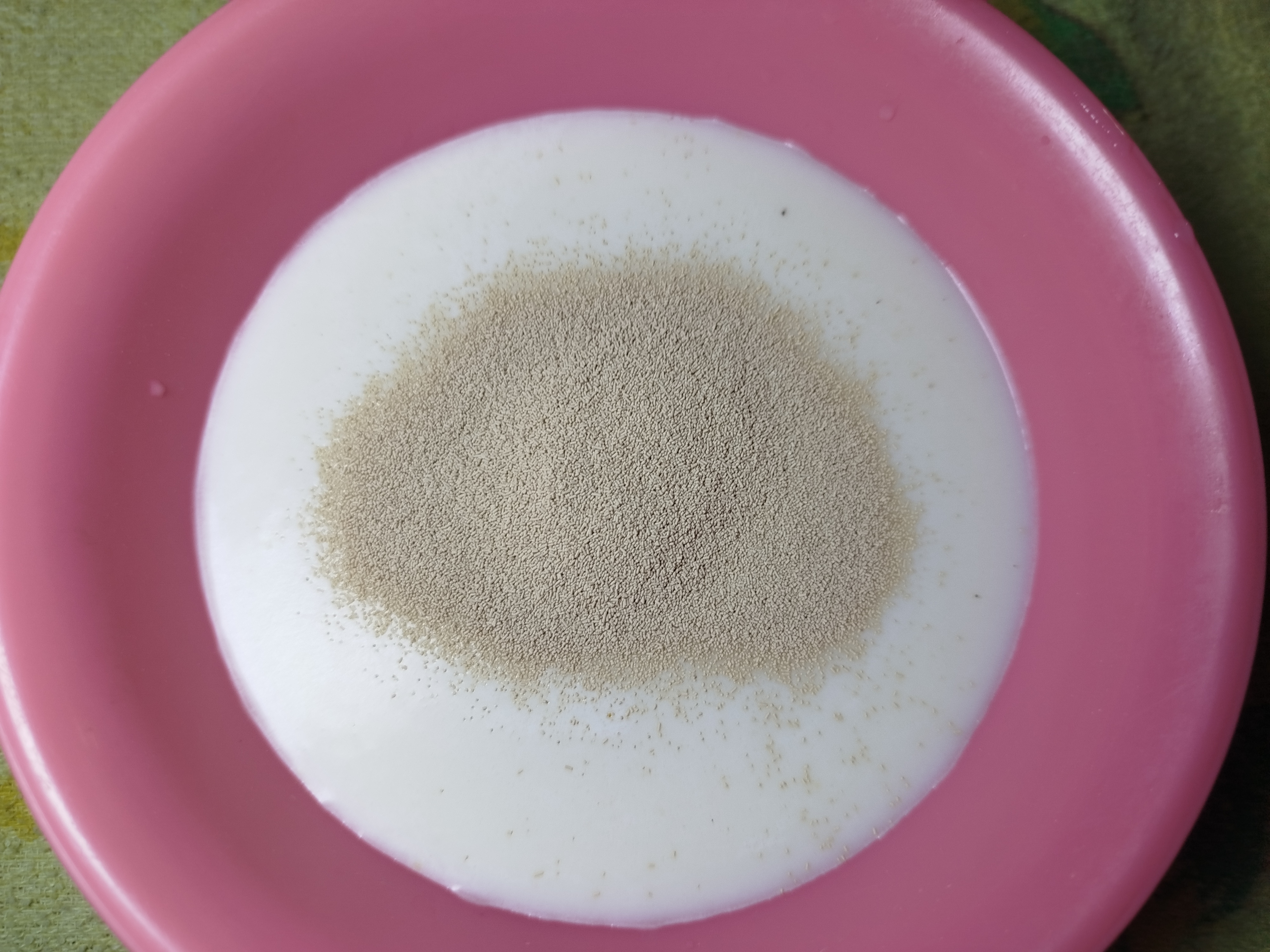 El primer paso a realizar es activar la levadura y para conseguir esto debemos colocar los siguientes ingredientes en un bol, lo primero es la leche liquida y tibia, seguido el azúcar y después la levadura, una vez unidos estos tres ingredientes lo que hacemos es cubrir con un paño de cocina y dejar reposar unos 10 minutos como se indica en la clase.