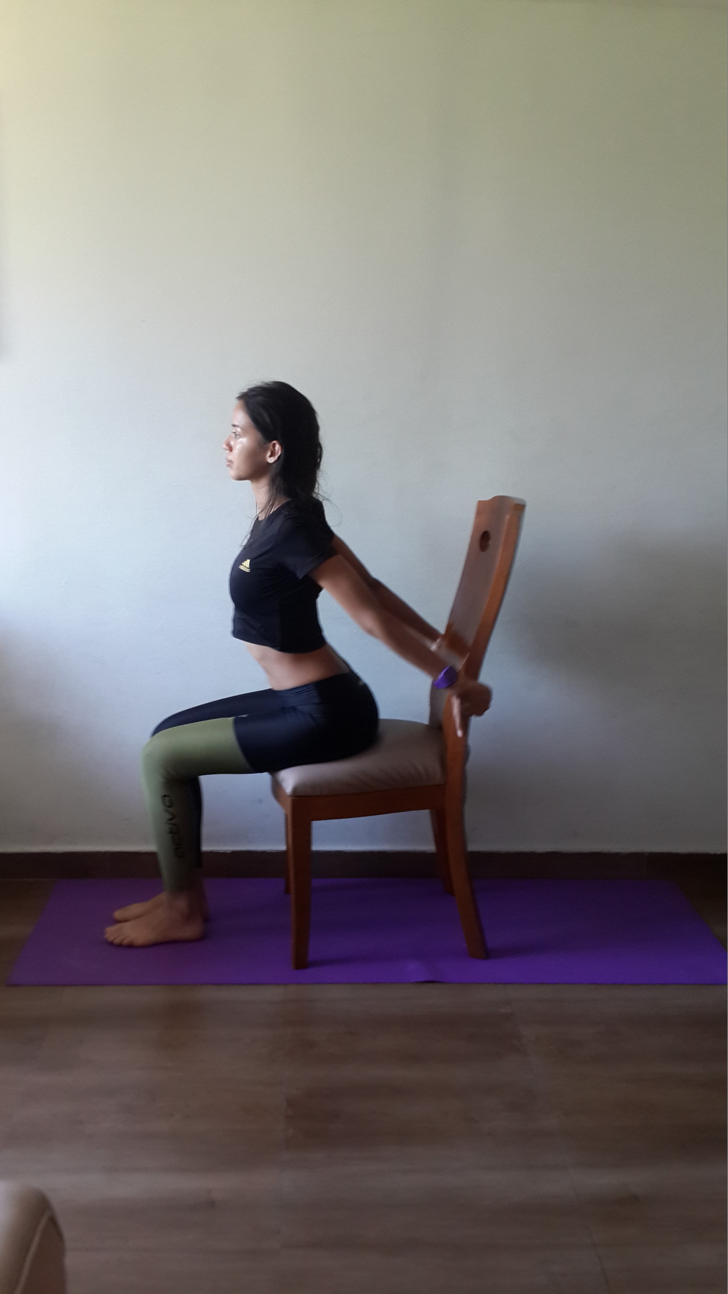 의자를 등 뒤로 더 잡고 어깨를 약간 아래로 당겨도 같은 작업을 다시 수행 할 수 있습니다.
