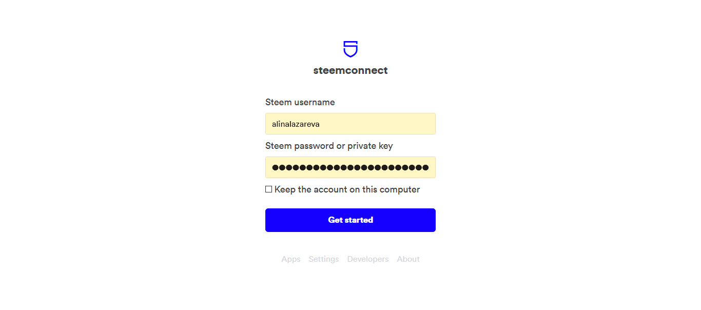 Вводим свой стимит логин и приват ключ или мастер пасс от аккаунта. Нажимаем Get started (не знаю, может это мои локальные глюки, не если ставлю птичку запомнить то не получается залогинится)