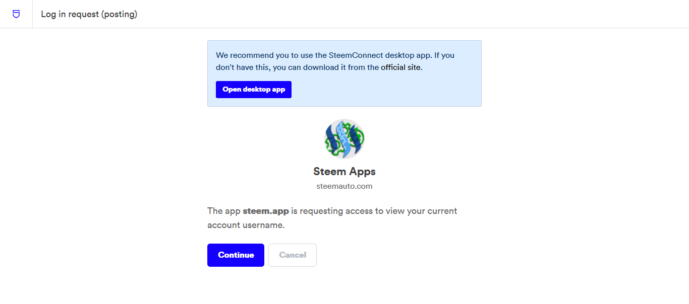 Далее нажимаем Continue или если вы используете десктоп приложение нажимаем Open desktop app. Я рассматриваю ситуацию когда десктоп не используется.