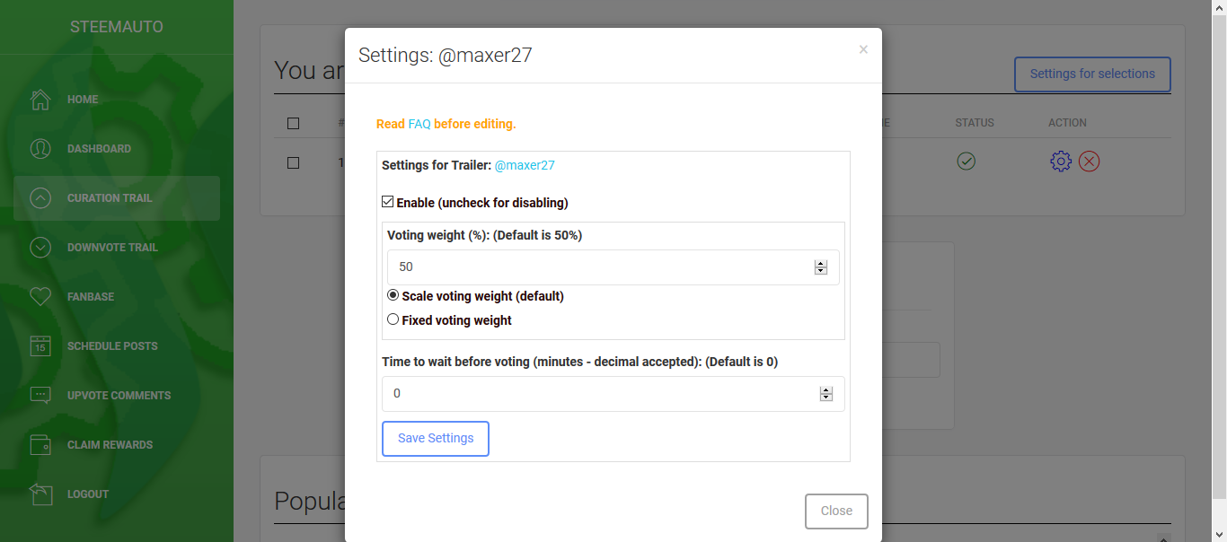 Силу можно ставить двумя вариантами, Scale voting weight - тут существенное отличие от ботов Vik, это процент от силы с которой проголосовал ведущий паровозом.