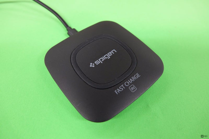 WPC의 Qi 충전 방식 규격을 채용한 슈피겐 F301W는 기존보다 1.5배가량 빠른 충전 속도를 제공합니다. 단, 5V의 일반충전 어댑터를 결합해 사용하면 고속 무선충전이 되지 않는 만큼 어댑터 출력을 잘 확인하고 연결할 필요가 있습니다. F301W 제품 구성에 전용 어댑터가 포함돼 있지 않다는 점이 아쉽습니다.