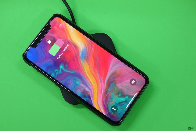 케이스를 끼웠을 때도 무선충전 기능이 문제없이 작동합니다. 제품 스펙 상에는 5~7mm까지는 기기가 패드 부분과 떨어져 있어도 충전이 되는 것으로 명시돼 있는데요. 얇은 PP 소재 케이스는 물론이고 어느 정도 두께가 있는 TPU 소재 케이스에서도 충전이 이뤄지는 모습을 확인했습니다.