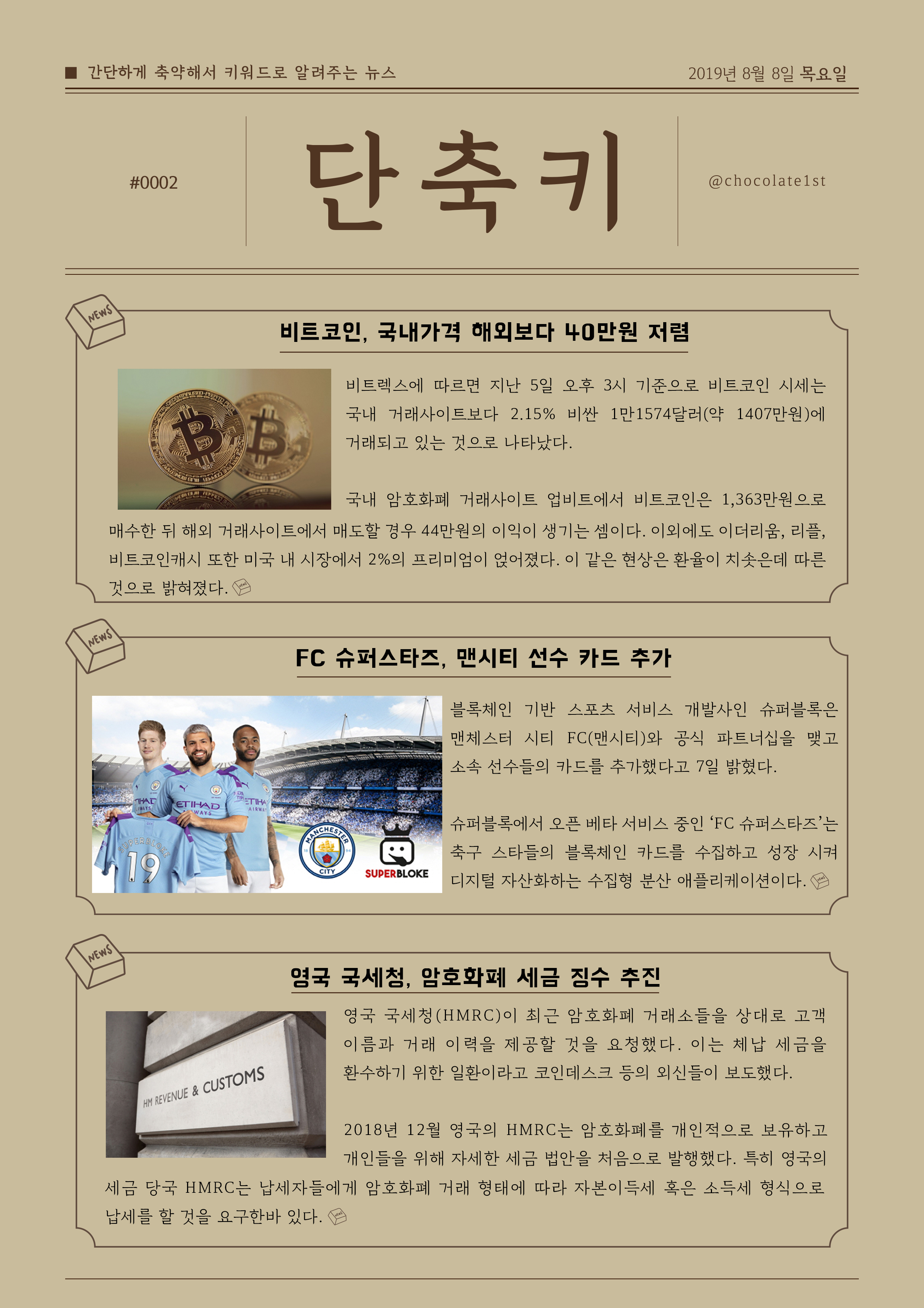간단하게 읽는 뉴스 단축키 #0002chocolate1st (63)in #sct • 7 years ago 오늘은 가을의 시작을 알리는 입추입니다. 그런 거 치고는 여전히 날이 덥네요. 모두들 건강 조심하시고, 시원한 하루 되시길. :) 간단하게 읽는 뉴스 단축키 #0002 written by @chocolate1st #jjm #mini #zzan #liv #palnet #steemleo #union
