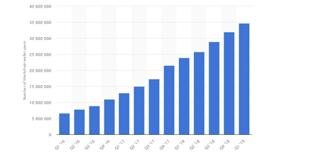 Forbes 기고가인 Billy Banbrough는 최근 “비트코인과 암호화폐 투자는 ‘한 세대에 한 번뿐인 기회’라는 글을 기고했습니다. Statista에서 발행한 통계에 따르면, 2016년 1분기 670만 개에서 2019년 1분기 3460만 개로 약 500% 이상 증가한 블록체인 월렛의 개수가 이러한 견해를 뒷받침합니다.