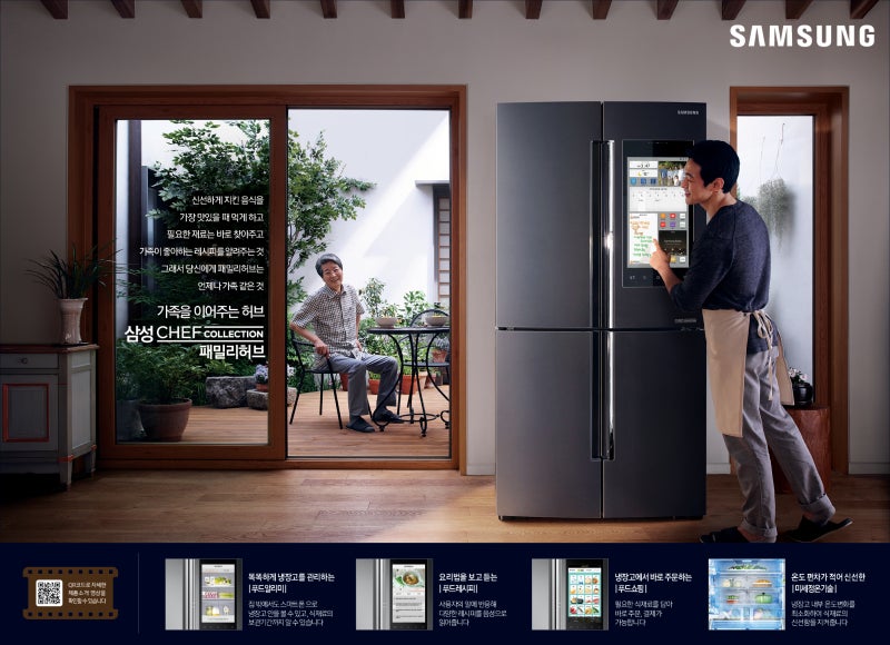 삼성전자는 패밀리 허브에 IoT를 적용했다. 올해는 음성인식 기능을 업그레이드 시켰고, 주방에서 말을 하면 냉장고가 검색해주고 라디오를 실행시켜 주는 등 각종 기능을 탑재했다.