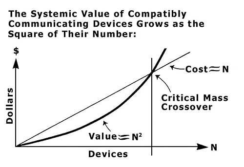 이러한 비즈니스에서 블록체인이 필수적인가를 논하기 전에 이게 가능할 것인가? 아니 이런 소셜 게임을 만드는 사람은 땅파서 장사하나? ...맞다 땅파서 장사를 하게 되는 거지만 초기 진입자로서의 혜택과 게임플랫폼 자체의 가치가 올라가게 된다. 앞서 썼던 글들에서 언급했던 것처럼 사용자가 많아지면 많아질 수록 그 네트워크의 가치는 올라가게 된다. 위의 그림은 Met Clafe's Law를 도식화 한 것이고 일전에 말했던 박완x님의 블록체인 네트워크 벨류에이션 관련 글을 참고 했다.