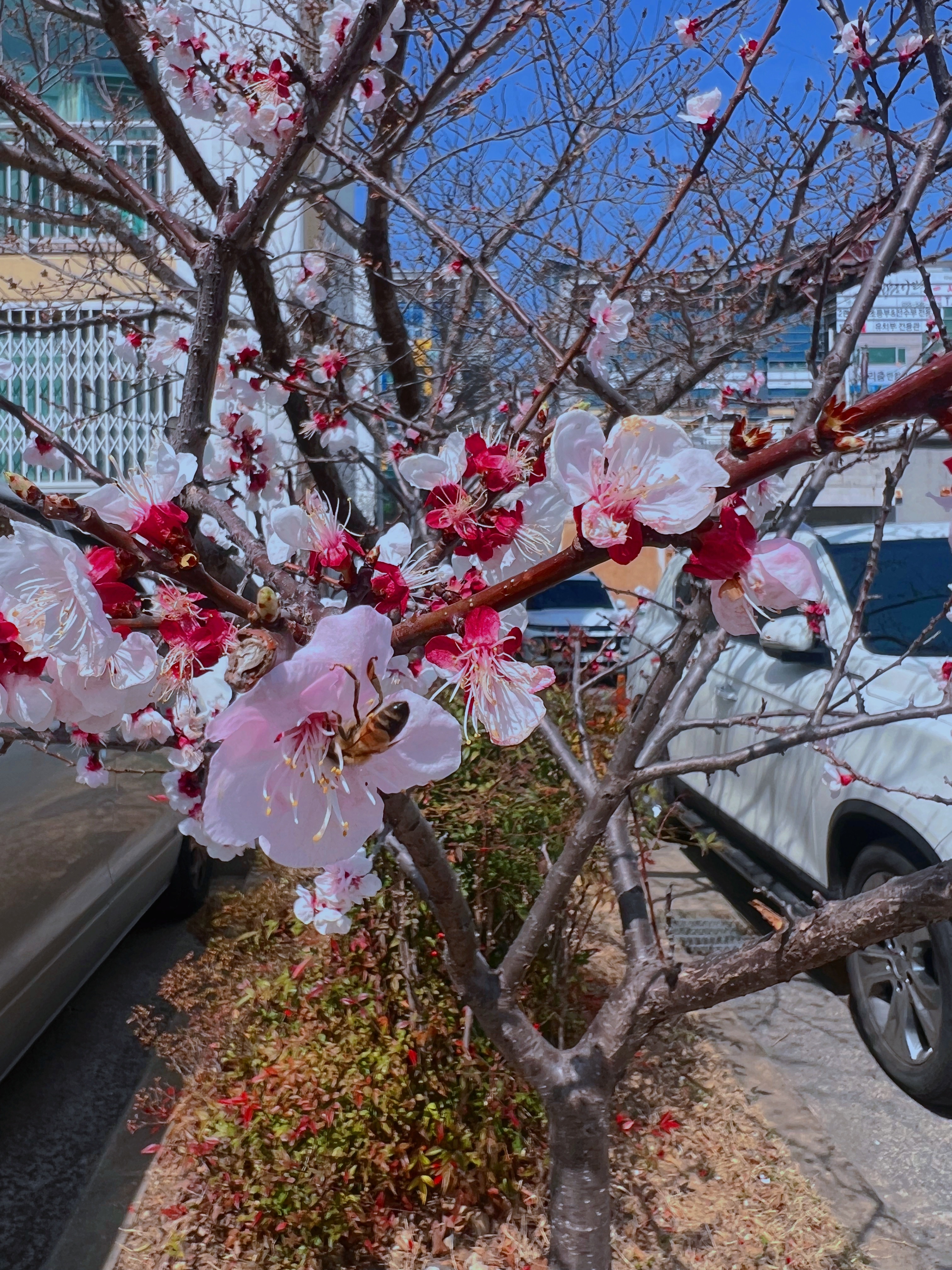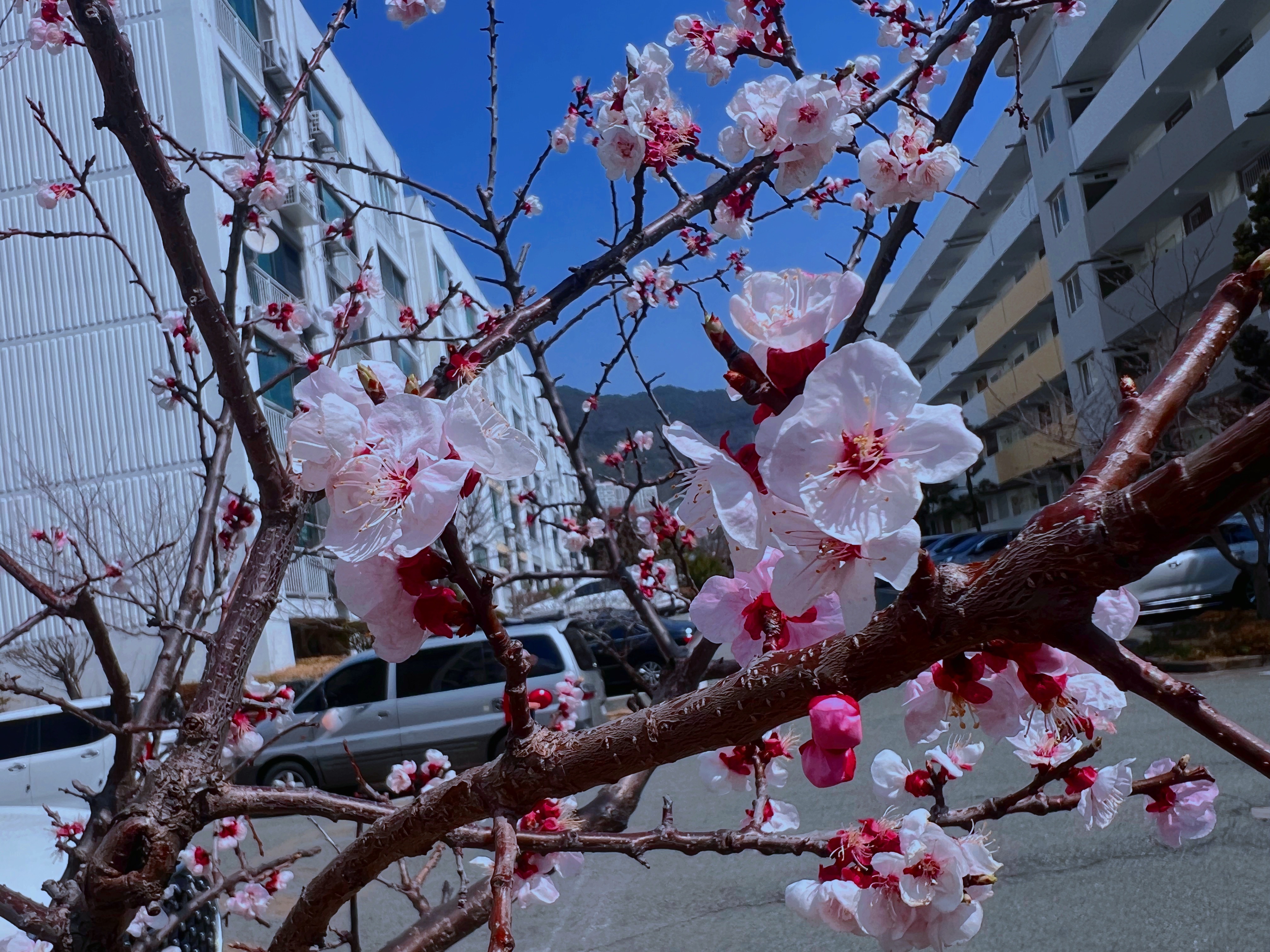 아파트 단지에 올해도 어김없이 벚꽃이 피었네요.
