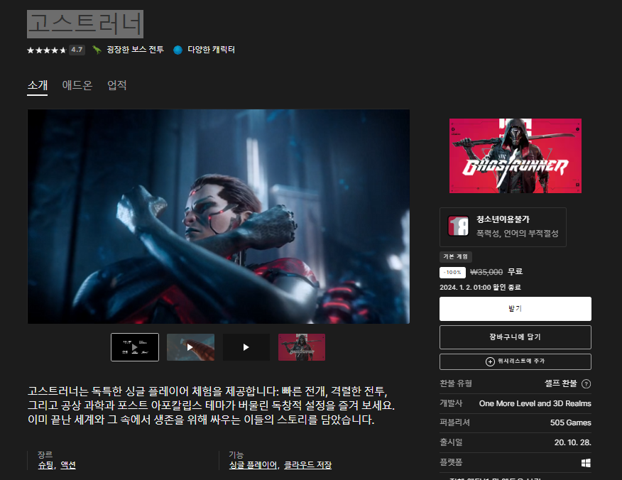 <게임> 에픽 무료게임 "고스트러너"입니다. 새해복 많이 받으세요gaara2020 (62)in #sct • 2 years ago 안녕하세요 @gaara2020입니다. 2024년 첫날이네요~~ 새해복 많이 받으세요~~ 오늘 에픽 무료게임 "고스트러너"입니다. (1월2일 01:00까지 라이브러리에 저장 가능합니다) https://store.epicgames.com/ko/p/ghostrunner #kr #aaa #dblog #actnearn #zzan #krsuccess #sct-freeboard