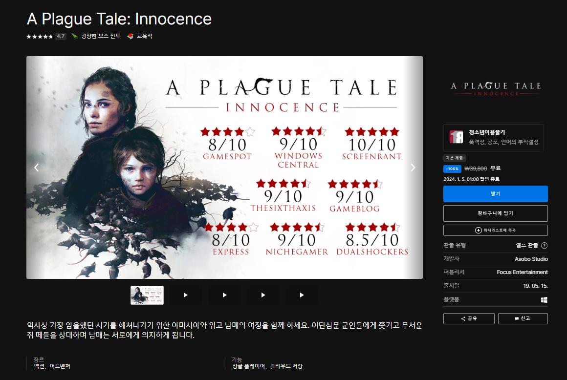 https://store.epicgames.com/ko/p/a-plague-tale-innocence