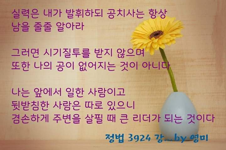 요즘 주변에서 시기 질투를 받고 있다면 상대를 뭐라 할것이 아니라 나를 돌아봐야 하지 않을까 생각해 봅니다
