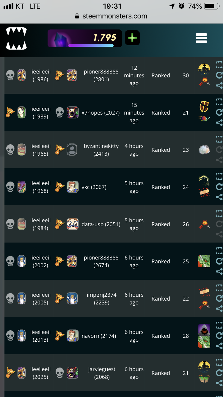 [스몬]요즘 5연패는 기본이네요iieeiieeii (62)in #sct • 7 years ago 일퀘를 하려면 기본 5연패는 한번해야 끝낼수 있네요 ㅎㅎㅎ 연승하더라도 3연승하려고하면 꼭 점수높은 플레이어랑 붙여주는지 ㅎㅎㅎ 그래도 에픽이 나왔으니 괜츈합니다 ㅎㅎㅎ #sct-kr #sct-freeboard #palnet #zzan #spt #steemace #battle